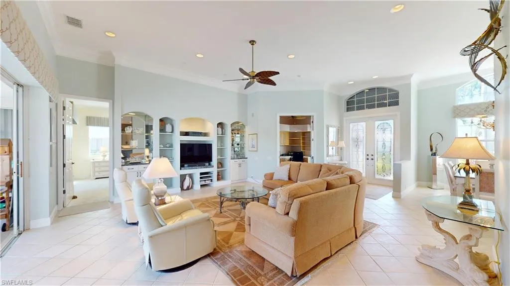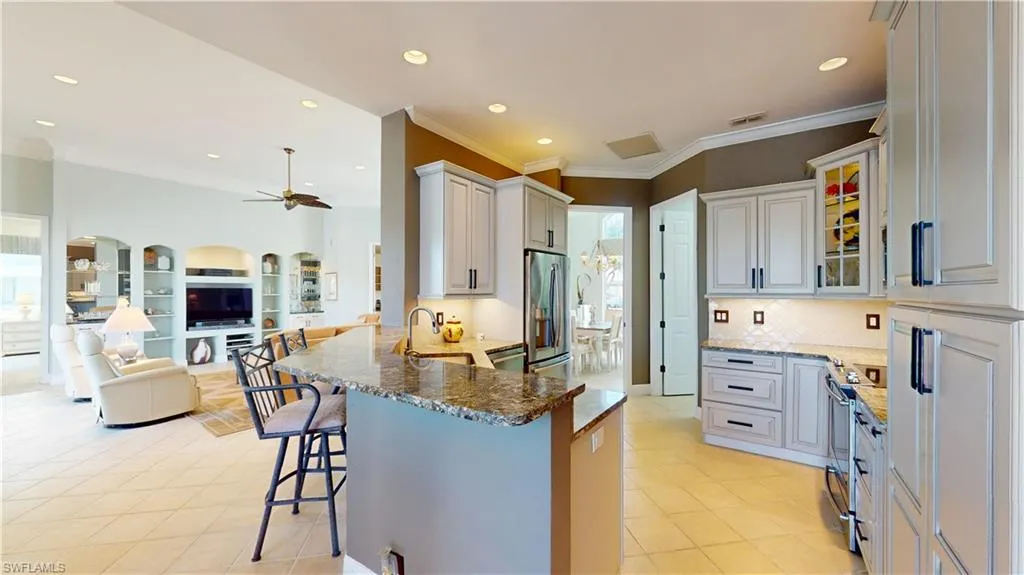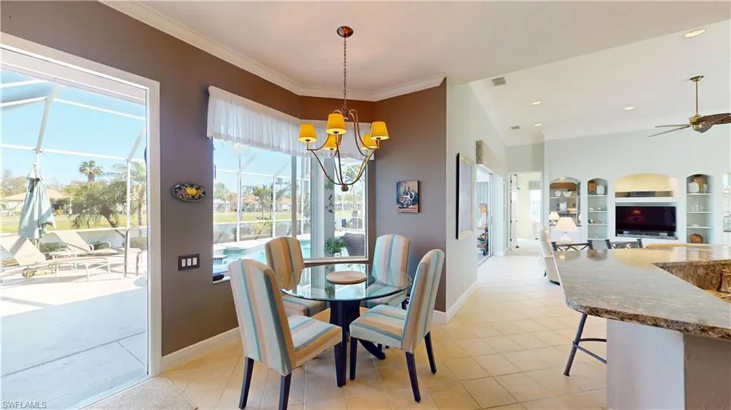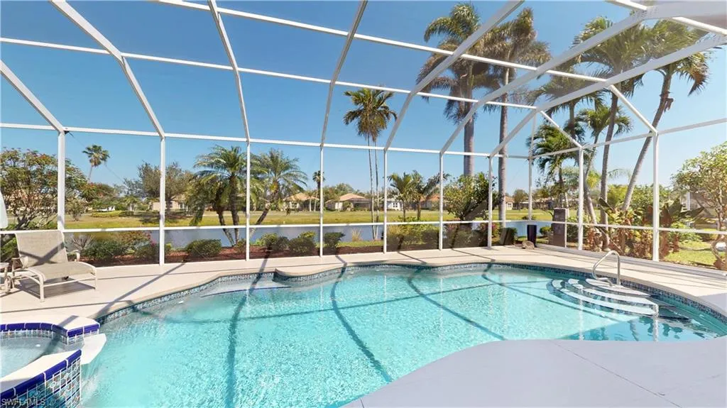 Welcome to the “Carlisle” estate home in Lexington Country Club. This beautiful single family home has a pool and a 2 car garage with a golf cart garage door on the side of the house. The kitchen and bathrooms have been remodeled with new cabinets and countertops. All windows are hurricane impact windows with hurricane shutters on the lanai. The pool cage and pool liner were replaced, AC handler & condenser, water heater, roof, washer and dryer, kitchen appliances are all new within the past few years. The eating area off of the kitchen has a new bar area with a wine refrigerator. There is a beautiful view of the water on the 6th hole of the golf course. The Lexington community offers all the features of an active lifestyle with the 18-hole championship golf course, 12 lighted tennis courts with designated pickleball courts, 6 heated swimming pools, a fitness center with onsite group classes, lending library, tiki bar/restaurant, beach area, clubhouse restaurant, 3 bocce courts; onsite coffee shop. You will be wowed by the beautifully maintained grounds and appreciate the onsite 24 hr security. The community also offers special events like Music Monday at the Island Club, Bingo at the Clubhouse and an abundance of clubs to join depending on your interests. Move in and start enjoying the fabulous Lexington lifestyle! Just minutes from the beaches, RSW Airport, shopping, dining, and hospitals. This home is priced to sell.