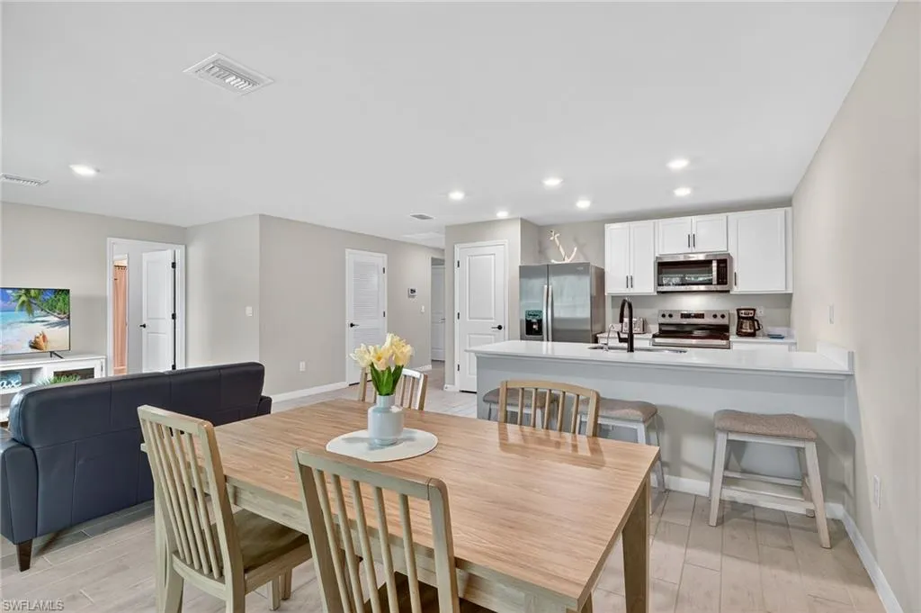 Step into your future home! NO HOA | New 2024 Home | 4 Beds / 2 Baths Peaceful Dead-End Street | Move-In Ready Welcome to your beautifully designed coastal-themed oasis! This single-family home is nestled on a quiet dead-end street in the heart of Lehigh Acres, just off Hwy 82 — offering quick and easy access to Fort Myers, I-75, and RSW Airport. Perfectly suited for a growing family, this spacious 4-bedroom, 2-bathroom home features a modern open-concept layout designed for today’s lifestyle. Beautiful tile in all main living areas and bathrooms, luxury vinyl flooring in the bedrooms. You’ll love the convenience of an inside laundry room and an attached 2-car garage, providing plenty of storage and functionality. Stay connected and in control with smart home features that integrate seamlessly with your devices. Located close to shopping, dining, parks, and schools, this home truly offers the best of comfort and convenience. Let’s find the perfect path to homeownership for you!