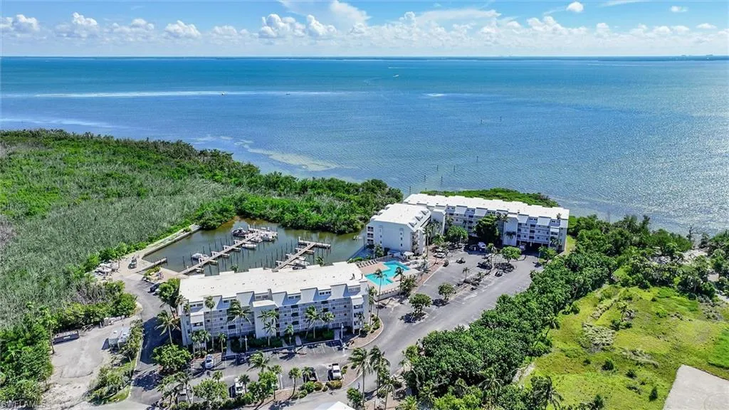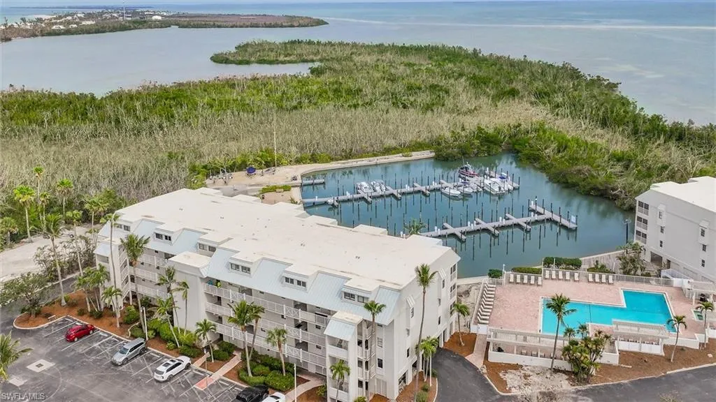 Tucked away in the coveted Bayside Villas, this beautifully refreshed one-bedroom, two-bathroom condo whispers island sophistication and barefoot luxury. Thoughtful renovations include dual owner closets, a welcoming breakfast bar where morning coffee tastes better with harbor views, your own custom primary bedroom retreat, handcrafted kitchen cabinetry, and that dreamy walk-in shower where salt-kissed skin meets warm island rain. Perched on the second floor with front-row paradise views, this coastal haven offers sweeping vistas of Pine Island Sound and its abundant sea life, where aquamarine waters kiss endless horizons. The screened lanai becomes your personal slice of heaven—watching the harbor’s gentle dance, boats gliding through the Intracoastal and glimpses of the resort-style Bayside pool shimmering below. Inside, coastal elegance flows through carefully chosen pieces that speak island soul with refined whispers. Silestone surfaces and premium stainless-steel appliances grace the chef-worthy kitchen while warm shaker-style wood cabinetry and shelving offer generous storage wrapped in timeless charm. Just perfect for intimate sunset dinners. Both spa inspired bathrooms embrace effortless island luxury with granite vanities. This smartly designed 684-square-foot retreat maximizes every ocean breeze, featuring a fold-out sleeper welcoming four guests comfortably ideal for personal paradise or sweet rental investment. Location is everything on the island, where pristine beaches lie beyond your doorstep and the vibrant Captiva Village beckons with local treasures and restaurants. Art lovers can wander a nearby gallery, while adventure calls from South Seas’ exciting new Captiva Landing waterpark and full-service marina (with membership). The Intracoastal waterway opens endless possibilities—world renowned sports fishing, kayaking through emerald mangrove tunnels or sunset sails across the Gulf and Sound. Community amenities embrace the relaxed yet invigorating resort lifestyle naturally, with an expansive bayside pool perfect for morning swims, plus an outdoor spa where evening soaks under star filled skies become treasured island rituals. Under-building dedicated storage adds a practical touch. This turnkey gem arrives fully furnished and lovingly maintained. Whether seeking personal sanctuary or investment property with strong rental potential, this Bayside Villa captures the heart of Captiva living—where every sunrise paints new possibilities