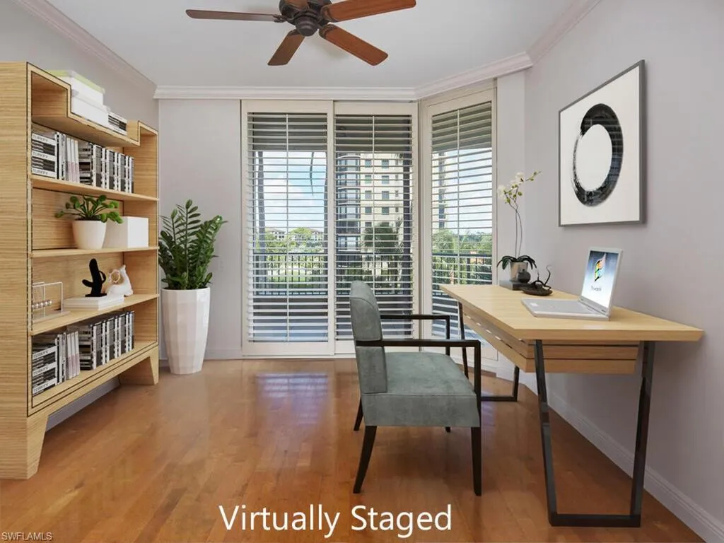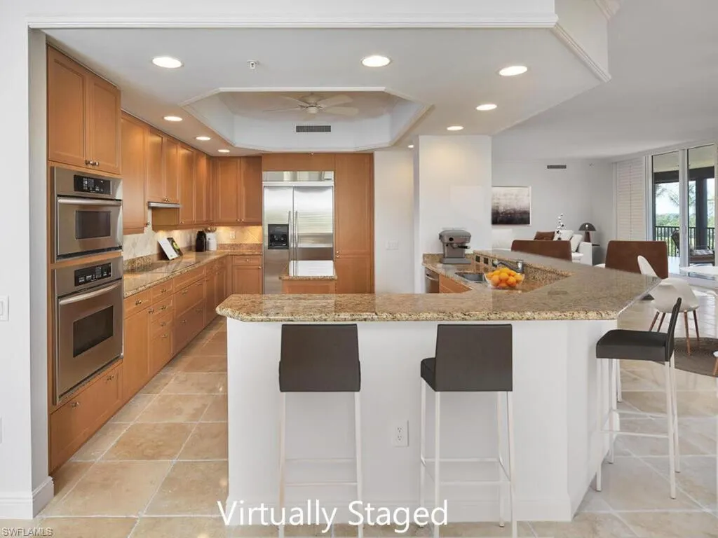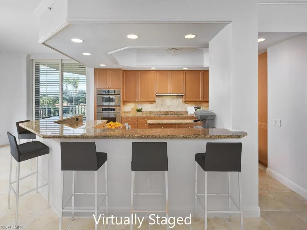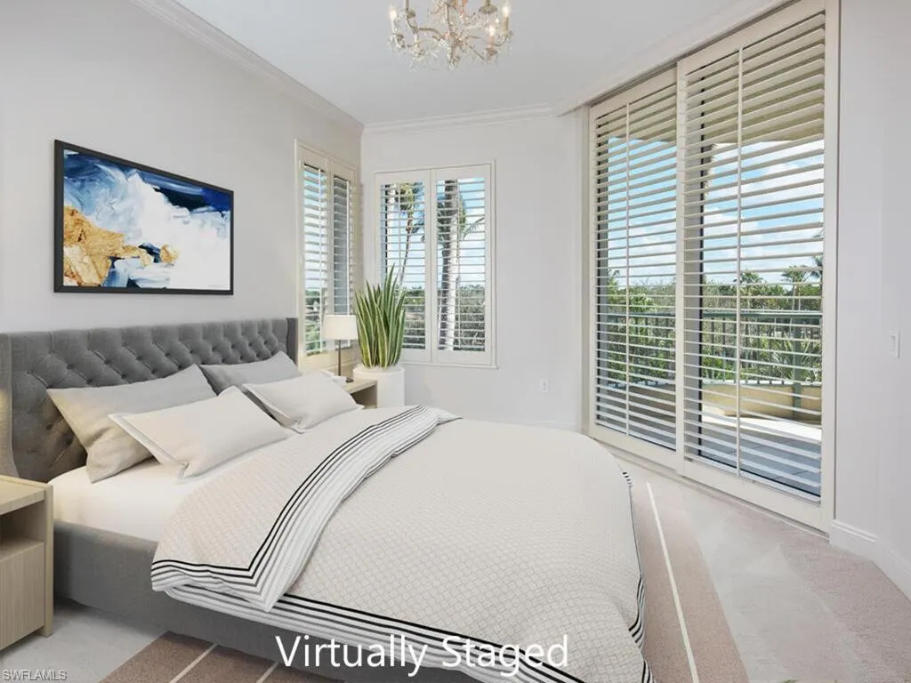 C12953 – Impeccable corner residence in Treviso, located inside The Colony at Pelican Landing, which is Bonita Springs’ premier luxury golf and beach community. This beautifully maintained and spacious single-family-style corner residence boasts a fabulous and functional floor plan that offers the perfect blend of elegance, comfort, and privacy. Enjoy exquisite panoramic views of emerald fairways, lush tropical palms, and manicured landscaping from this bright, wraparound corner unit, filled with natural light from floor-to-ceiling glass slicing doors and windows. The expansive layout features 3 ensuite bedrooms and a private study, 3.5 baths, and multiple living and entertaining spaces, including a family room, formal living and dining rooms, and a charming breakfast nook. The lavish primary suite is a private retreat, complete with a spa-style bathroom and dual custom walk-in closets and private access to the lanai. A true split-bedroom floor plan offers optimal privacy for the two ensuite guest bedrooms. Additional highlights include: Private elevator foyer, 42-foot screened lanai plus two open-air balconies. Two assigned garage spaces and extra airconditoned secure storage. High-end finishes including plantation shutters, crown molding, 9’8” ceilings, ceiling fans, and marble/granite surfaces and automatic storm shutters. This is a rare opportunity to enjoy resort-style living in a meticulously cared-for residence with timeless luxury and unbeatable views. Treviso’s updated common areas feature transitional furnishings and marble floors with views over water features. Three guest suites, which include a two bedroom apartment. A beautiful secure lobby, elegant social room, billiards room, theater, and a newly updated fitness center complete the interior amenities. Spa and free form large pool with graceful beach access and a separate social pavilion. The Bay Club, a Colony private waterfront dining facility, offers intimate dining or informal sunset dining/entertainment. Experience a full array of community amenities such as a 34 acre island beach park with boat shuttle, Kayaking, canoeing, tennis, pickle ball, bocce and sailing. Close to Coconut Point Shopping Center. 15 minutes to the airport.