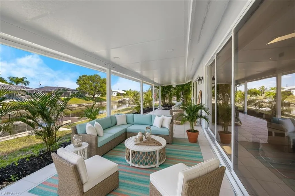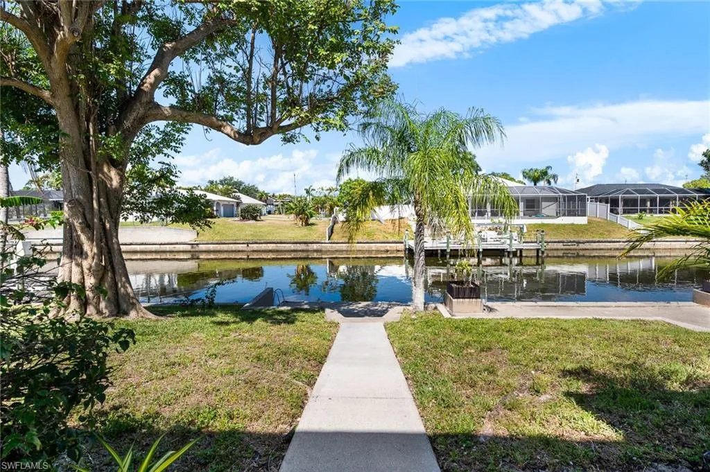 Discover this spacious 4-bedroom, 2-bathroom rental home situated on a Gulf access canal in Cape Coral, offering the ultimate Florida lifestyle. Enjoy the serene ambiance of a tropical garden and a large lanai with stunning canal views, ideal for relaxing or entertaining guests. The property also features a concrete boat dock area, perfect for water enthusiasts.