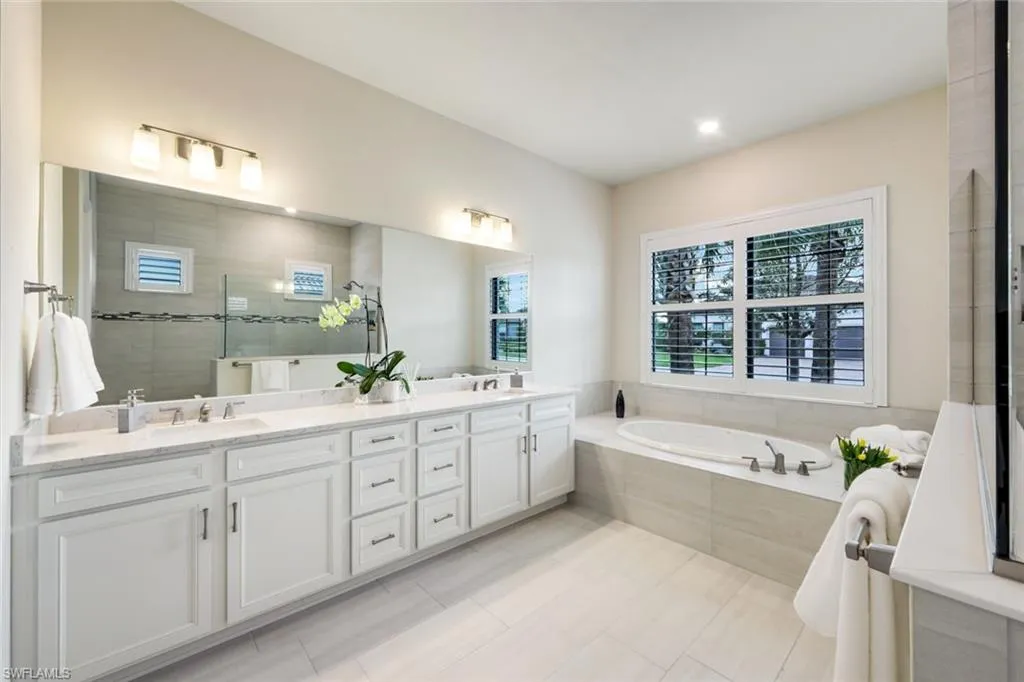 floors and organizers including a lift bar to raise golf bags and bicycles up to ceiling height. Located on an extra-large lot ensures privacy, creating a personal sanctuary within this vibrant community. Full Time Sports Director oversees the state-of-the-art sports complex featuring Pickleball, Bocce, and Tennis. Two clubhouses offering fine and casual dining at both beautifully appointed restaurants. Unwind in the resort- style heated pool, lap pool, and spa, or gather with friends at the lively outdoor Tiki Bar. The cutting-edge fitness center and movement studio provide endless opportunities to stay active including Yoga, Pilates, Zumba and water aerobics—all within a secure, gated enclave that feels like paradise. Full Time Social Activity Director manages the fun filled social activity calendar. Tucked away in one of Naples’ most sought-after communities, this hidden gem offers the perfect balance of tranquility and accessibility. World-class shopping, dining, and entertainment are just minutes away, ensuring that every convenience is at your fingertips. Head West on Vanderbilt Beach Road and find white sandy beaches filled with seashells. No CDD in this community and low golf and HOA fees make this community of only 560+ homes, a real winner! Schedule your private showing today and experience the pinnacle of elegant Florida living. Your DREAM home awaits!