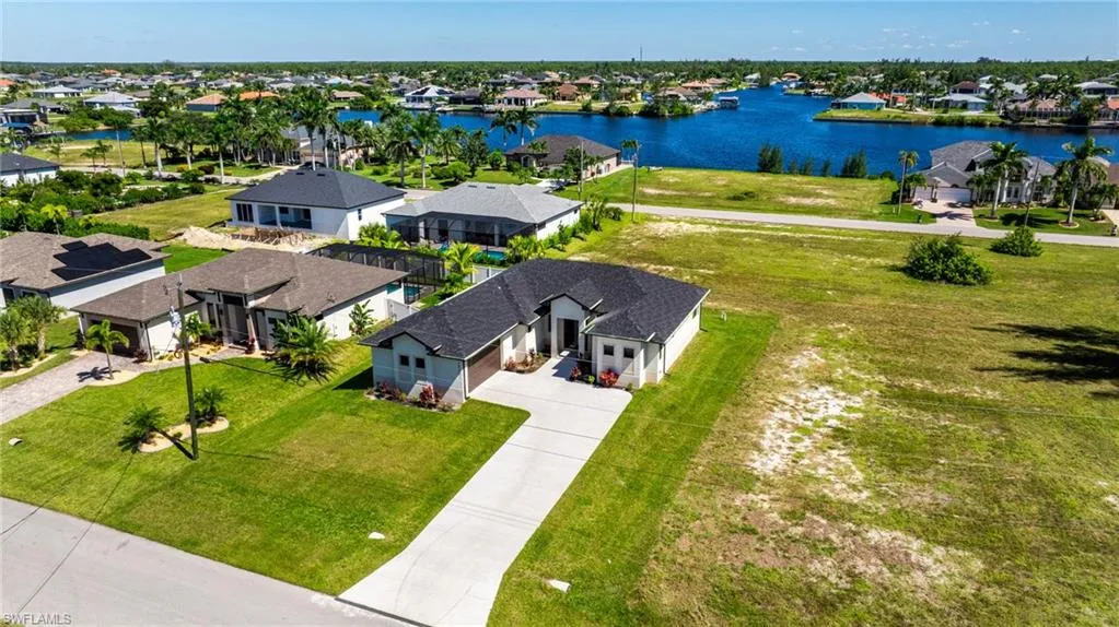 Welcome to coastal living! Brand new, beautiful 4 bedroom/3 bath concrete block home in desirable Northwest Cape Coral. On well and septic (no assessments) and NO FLOOD ZONE! home features HURRICANE-RATED windows and doors (no shutters needed), a large and bright open-concept living space with tile floors throughout, soaring cathedral ceiling and abundant natural light. The bright chef’s kitchen features a huge island, soft-close cabinetry, sleek granite countertops with waterfall edge, stainless steel appliances, and relaxing breakfast nook. The large owner’s bedroom has a bright ensuite bath with Quartz counter tops, dual sinks, a tiled step-in shower, and dual his & hers walk-in closet. Three more bedrooms and a third bathroom provide lots of room for kids, guests, a den, a flex space or a home office. Best of all, this home offers peace of mind and ultimate freedom—no flood zone, no HOA—so you can truly enjoy your space without limitations. Located just minutes from pristine beaches and vibrant shopping and dining, this gem combines the best of Florida lifestyle and location!