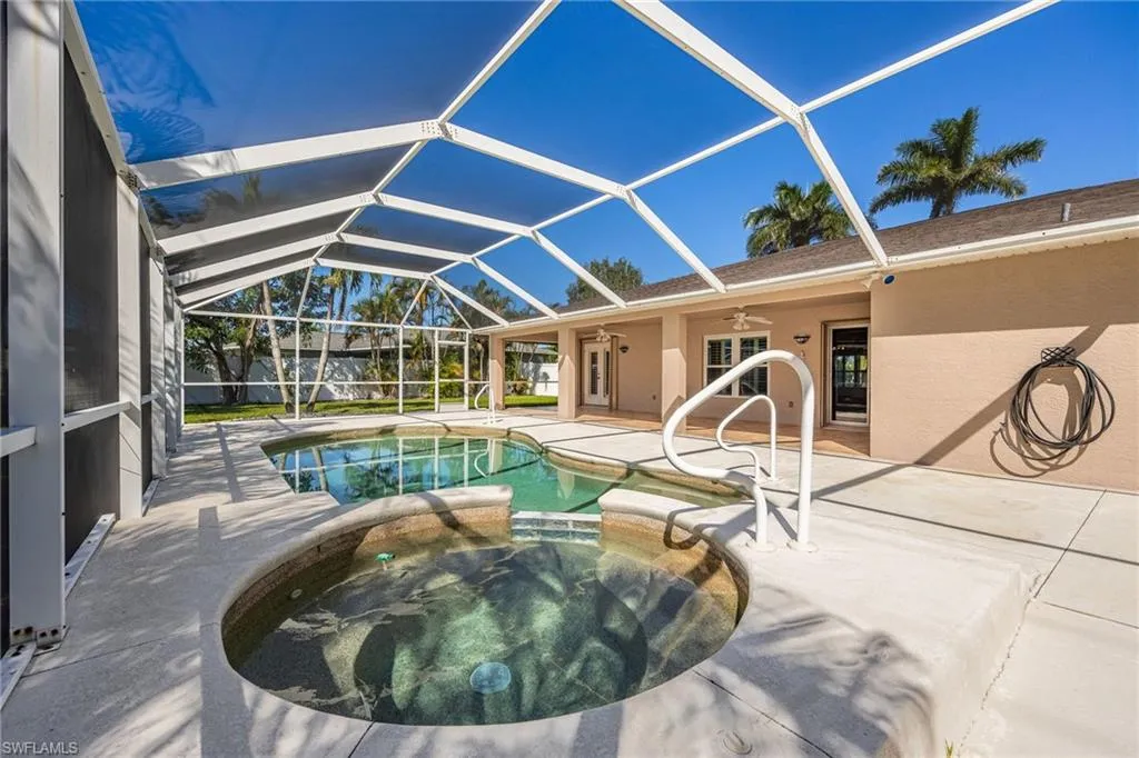 Move in ready, Updated 4 bedroom 2 bath heated pool and spa home, situated on an oversized lot. Home is in an established no flood zone neighborhood, with city water and sewage. This spacious home has a formal living and dining area and either room could work for a home office. Great for entertaining guest. The rest of the living area is an open floor concept, with large family room and updated kitchen. Kitchen boast new wood self closing cabinets, stainless steel appliances, man made countertops and large pantry. Spacious Primary bedroom comes with tray ceiling and En-suite bathroom which has been updated with new wood vanity, double sinks, tiled shower and tub. There are three bedrooms on the other side of the house with an updated pool bath which goes out to an expansive covered and screened in lanai. Three lot site is fenced in, plenty of room for children to play and pets to roam. Upgrades include Storm shutters all the way around, house generator, shed which comes with electricity and water softener system. Roof replaced in 2023, New AC installed in 2024. Newer windows 2019 along with new front door 2021. What more do you need? This house has everything and is ready for a new family to enjoy. Come see all this home has to offer. Make your appointment today!