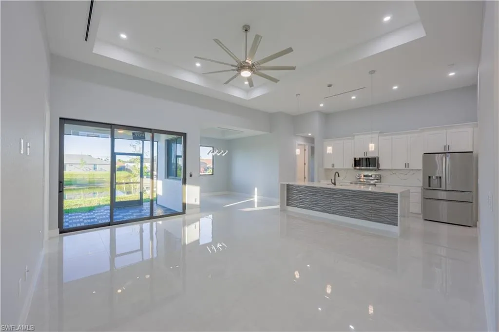 CANAL VIEW HOME, offers the perfect combination of luxury, functionality, and location. Featuring 4 spacious bedrooms, 3 full bathrooms, and over 2,000 sq ft of living space under air, this residence is ideal for both family living and entertaining.The open-concept layout is enhanced by elegant 32″ x 32″ tile flooring throughout, soaring tray ceilings, and expansive 3-panel PGT impact sliding doors that flood the home with natural light. The modern kitchen is a true showpiece, complete with a striking waterfall quartz island, ample cabinetry, and premium finishes. Each bathroom includes stylish walk-in showers, while the bedrooms offer generous space and custom walk-in closets. Step outside to a fully screened lanai featuring a built-in outdoor kitchen, perfect for enjoying serene canal views and the Florida lifestyle. There is also room to add a pool, allowing you to create your own private retreat. Additional highlights include a durable shingle roof, impact-resistant windows and doors, and a spacious 2-car garage. Best of all, all assessments have been paid — a valuable bonus for the new owner.NO HOA , NO FLOOD ZONE