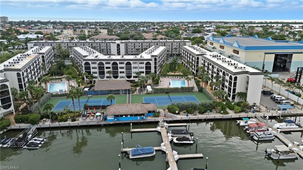 Swim, Boat, Profit — your Marco Island paradise awaits! Updated top-floor 1BR/1BA condo at Anglers Cove offers 717 sq. ft. of turnkey coastal living with tile floors, fresh décor, new AC, and partial river/pool views. Weekly rentals allowed for strong income potential! Enjoy two heated pools, three spas, tennis, boat docks with Gulf access, and the on-site Dolphin Tiki Bar & Grill. Steps to dining, shopping, and beaches—perfect for vacation use or investment. Live the dream and let the income roll in!