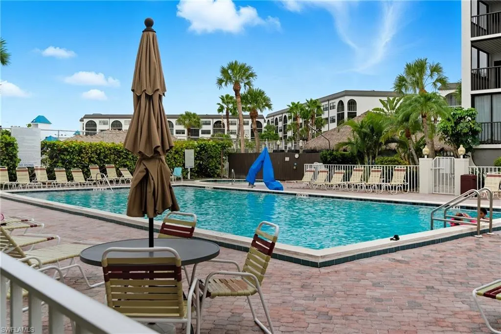 Nada mejor que nadar, navegar y ganar — ¡tu paraíso en Marco Island te espera! Este condominio actualizado en el último piso de Anglers Cove ofrece 1 dormitorio, 1 baño y 717 pies cuadrados de vida costera completamente amueblada. Presenta pisos de cerámica, una decoración fresca, aire acondicionado nuevo y vistas parciales al río y la piscina. Se permiten alquileres semanales, lo que brinda un excelente potencial de ingresos. Disfruta de dos piscinas climatizadas, tres jacuzzis, canchas de tenis, muelles con acceso directo al Golfo y el famoso restaurante Dolphin Tiki Bar & Grill dentro del complejo. A solo pasos de restaurantes, tiendas y playas, esta propiedad es perfecta tanto para vacaciones como para inversión. ¡Vive el sueño isleño y deja que los ingresos fluyan!