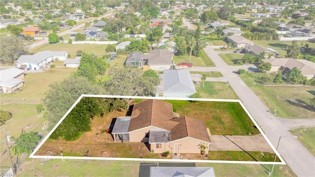 ENDLESS POTENTIAL IN A PRIME LOCATION-SAN CARLOS PARK! Discover the charm and possibilities in this spacious 3+Den, 2-Bath home—perfect for first-time buyers, investors, or anyone ready to design their dream space. Featuring durable tile and vinyl flooring, a newer roof, newer A/C unit, and a septic system under 10 years old. Enjoy peace of mind with no hurricane damage, NO HOA, city water, and NOT located in a flood zone. The oversized 2-car garage includes a workbench and laundry hookups—ideal for projects or extra storage. Relax on the screened-in lanai overlooking a spacious backyard with mature trees and room for a pool, offering plenty of space to garden, entertain, or simply unwind. Nestled in a quiet, established neighborhood just minutes from just minutes from RSW Airport, FGCU, Publix, shopping, dining, and everyday conveniences, this home offers excellent rental potential and a fantastic opportunity to add value. A true hidden gem ready for your finishing touches!