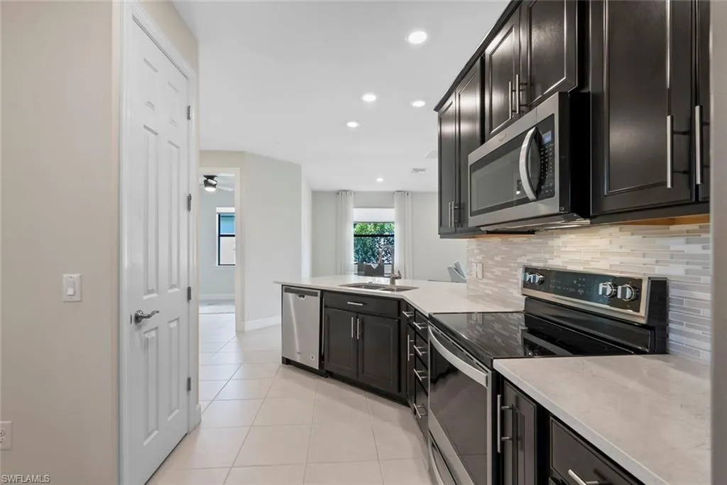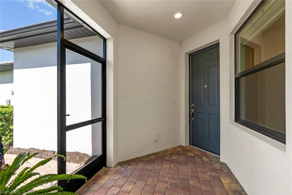 Welcome to your Florida dream home in the 55+ community of Del Webb Naples. Perfectly situated on a premium lot, this impeccably maintained CASCADIA VILLA (end unit) offers captivating views of both the LAKE and the 2nd FAIRWAY of Panther Run Golf Course—all from your EXTENDED SCREENED LANAI with a beautiful PICTURE-FRAME screen design. You’ll love relaxing on the PRIVATE lanai while taking in the SUNRISE – the perfect start to every day in paradise. Inside, you’ll find 2 bedrooms plus a den and 2 full baths, thoughtfully designed for both comfort and style. The open-concept layout features TILE FLOORING THROUGHOUT, custom window treatments, and the KITCHEN features quartz countertops, abundant cabinetry, and UPGRADED APPLIANCES. Elegant ceiling fans and designer lighting add a warm, welcoming touch throughout. The PRIMARY SUITE is a private retreat, complete with dual vanities, a large shower, and spacious closets including a walk in closet. Enjoy peace of mind with IMPACT RESISTANT WINDOWS, a screened front entry, and a GARAGE that boasts epoxy flooring, overhead dual storage racks, and an insulated door. Additional perks include termite protection included in your HOA fees and lower insurance premiums thanks to the attached villa design.This home comes with the SOCIAL MEMBERSHIP, but take note GOLF LOVERS, Panther Run Golf Club offers optional MEMBERSHIPS with premium golf experiences just steps from your backyard.In Del Webb Naples, you’ll enjoy WORLD-CLASS AMENITIES that rival luxury resorts: dine at the Rusty Putter Restaurant, soak in the RESORT-STYLE or LAP POOLS, break a sweat in the state-of-the-art FITNESS CENTER, and play your way through PICKLEBALL, TENNIS, bocce, billiards – even a top-tier GOLF SIMULATOR! Need groceries, church, or a bite to eat? Just hop in your golf cart and cruise into town – Publix and the heart of Ave Maria are just minutes away.This isn’t just a home – it’s a LIFESTYLE UPGRADE in one of Southwest Florida’s most vibrant 55+ communities. Don’t miss your chance to live where fun, fitness, and friendships flourish year-round!