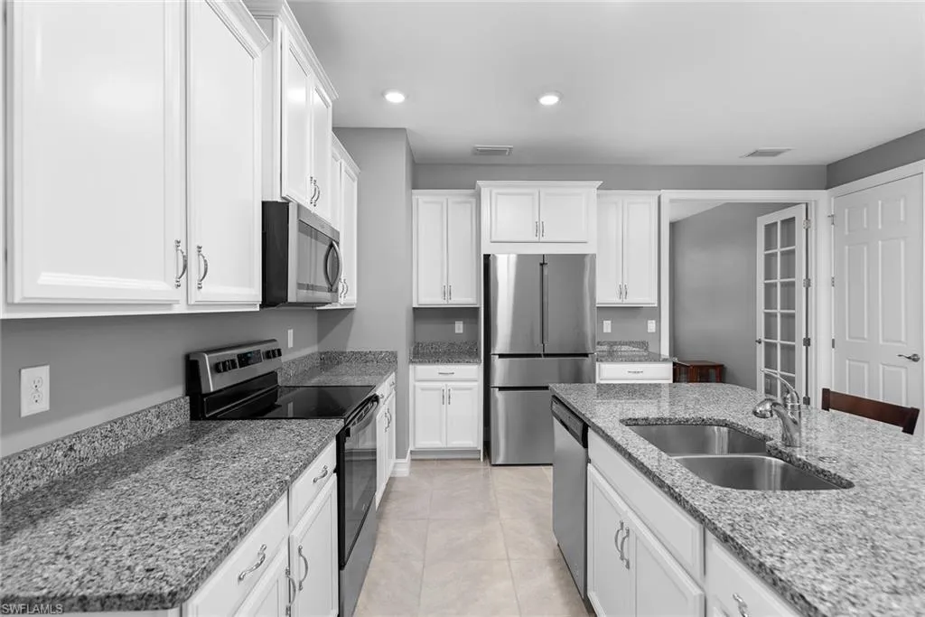 OWNER SAYS MAKE AN OFFER! This Jennings floor plan in the heart of Bonita Springs offers wonderful balance of luxury and convenience at an attractive price point. The home greets you with a spacious foyer leading into an open- concept design that connects the gourmet kitchen to the main living spaces, perfect for both entertaining and daily living. Key features of the kitchen include state of the art appliances, a quartz countertop, and a large walk- in pantry. The owners suite serves as a personal retreat, with expansive windows for natural light and an en- suite bathroom with a modern walk in shower. The outdoor space continues the theme of relaxation and private back yard. Throughout the home LVT panel flooring is used with tile in the wet area, and ceiling fans are installed in each room for added comfort. Residents in this gated community enjoy low HOA fees and access to an array of resort-style amenities, including a walk-in pool, spa, clubhouse, and a sandy beach area. Sports facilities include pickleball and tennis courts, with bocce ball courts and bike paths for a more relaxed pace. Its location offers privacy and convenience, with close proximity to shopping, golf courses , I 75 and an International airport, making everyday feel like a vacation. Virtual staging has been used but the furnishings in the home do come with home.