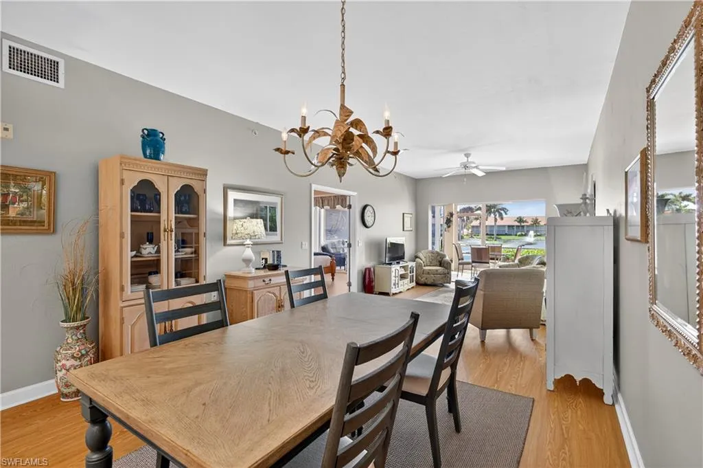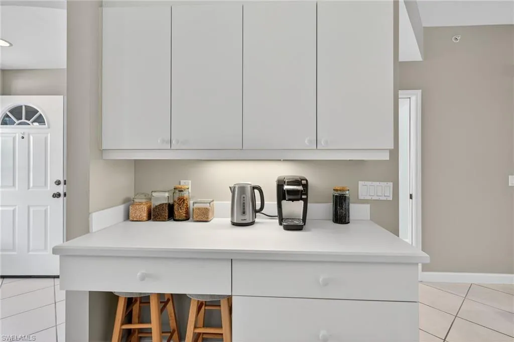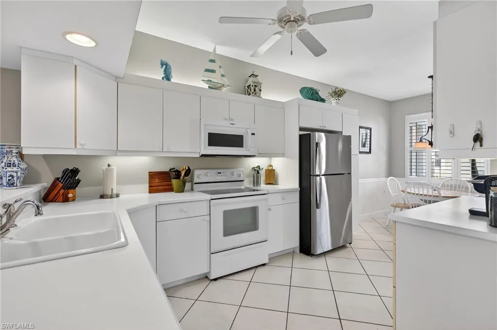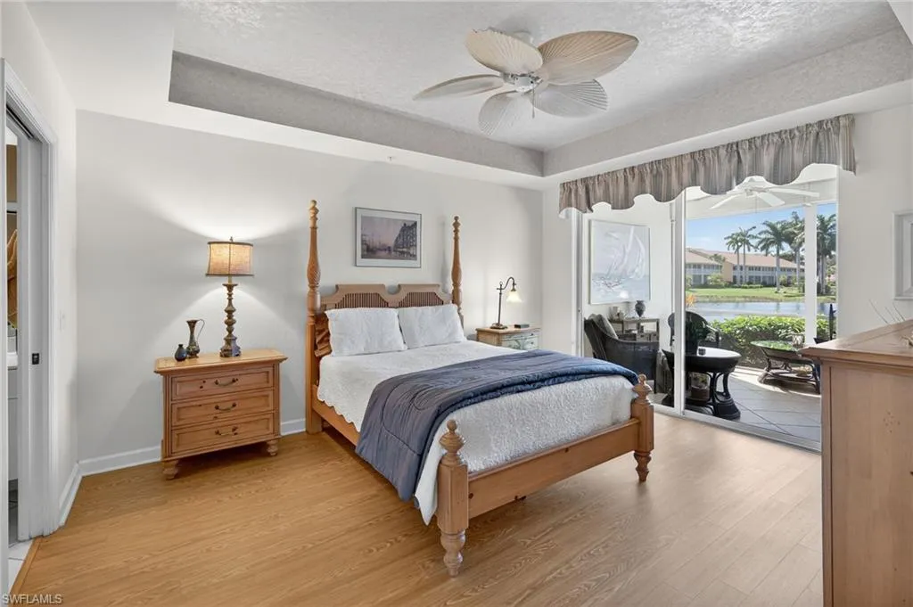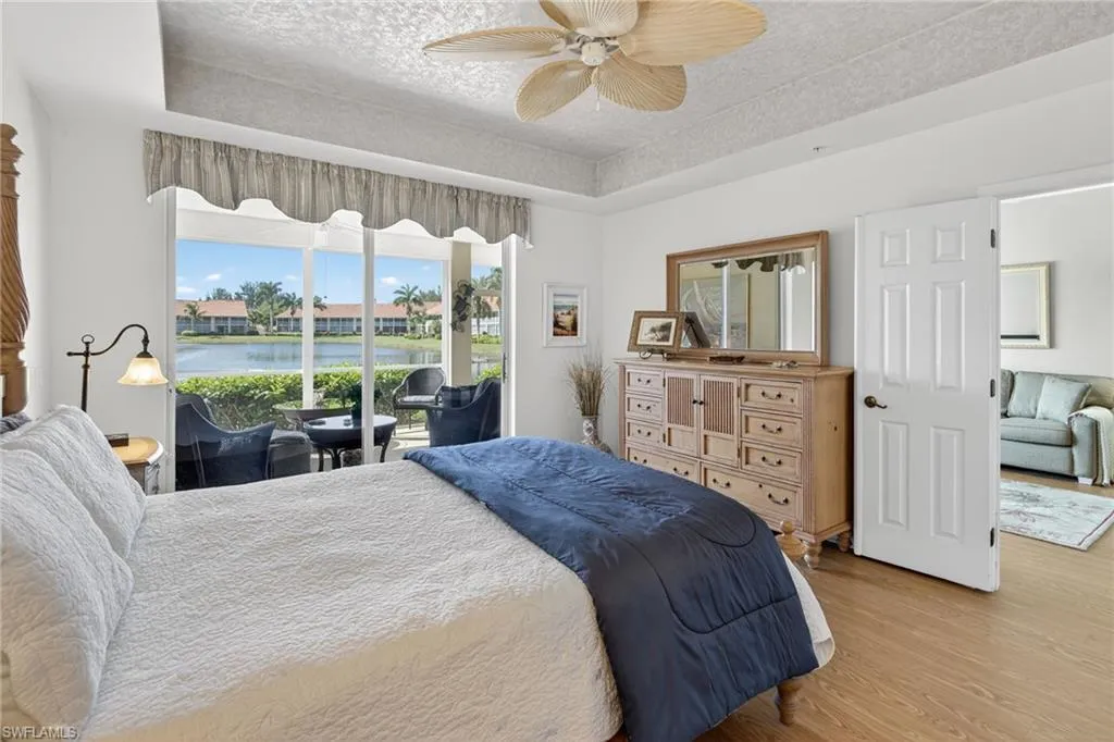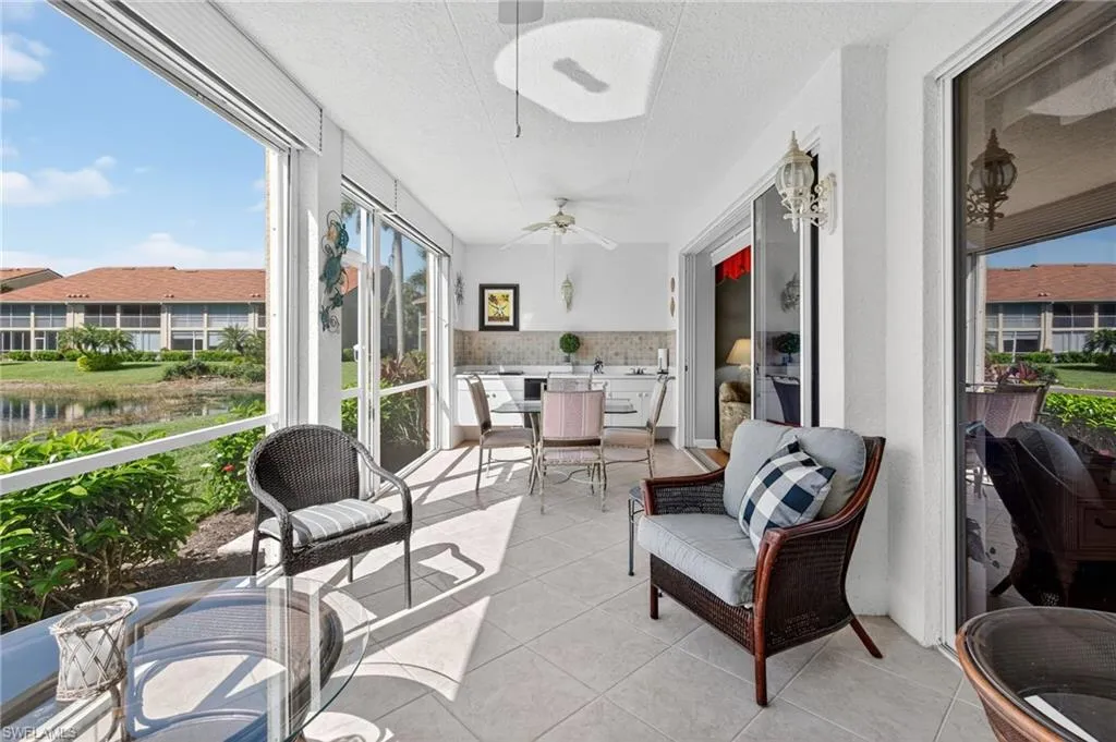 Live the resort lifestyle in the heart of paradise at Falling Waters — a gated, picturesque community known for its lush tropical landscaping and signature cascading waterfalls. This beautiful first-floor condo offers stair-free living and an inviting open layout perfect for entertaining. The spacious kitchen with a charming breakfast nook flows seamlessly into the dining and living areas, while triple sliding doors open wide to an oversized screened lanai with a built-in outdoor kitchen — ideal for enjoying meals with serene lake and fountain views. The primary suite is a private retreat featuring a large walk-in closet, ensuite bath, and direct lanai access for peaceful mornings or sunset relaxation. A second bedroom, full guest bath, and dedicated laundry room provide comfort and convenience for both residents and guests. Enjoy breathtaking western exposure, offering nightly sunsets over the water. Lanai storm shutters provide peace of mind. Residents of Falling Waters indulge in resort-style amenities, including one of Southwest Florida’s largest pools, an active clubhouse, tennis and bocce courts, shuffleboard, and a putting green — all designed for fun, fitness, and community connection. Located just 5 miles from Naples’ 5th Avenue and the white-sand beaches of the Gulf, this home offers the ultimate in Florida lifestyle living. Don’t miss your chance to own a slice of paradise — schedule your private showing today!