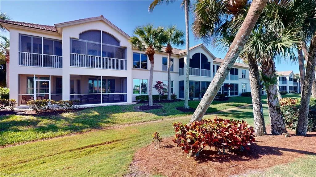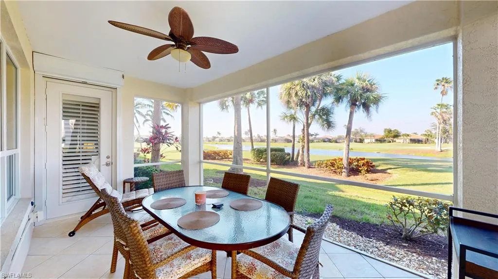 Welcome to Lexington Country Club’s “Nottingham” carriage home with a one car garage. This property has been completely remodeled and is in pristine condition. New porcelain tile planks throughout except for 2 of the 3 bedrooms where there is carpet. New kitchen cabinets, countertop, all appliances, and lighting. New bathroom cabinets, countertops, shower, and lighting. Hurricane impact windows throughout. Electric shutters in the lanai. Plantation shutters throughout. Crown molding. All doors have been replaced along with the door trim and baseboard. New AC in 2024. New water heater in 2023. Enjoy looking at the view of the 11th and 12th holes and pond from the large lanai. New screen door in the lanai with no-seeum screens. The Lexington community offers all the features of an active lifestyle with the 18-hole championship golf course, 12 lighted tennis courts with designated pickleball courts, 6 heated swimming pools, a fitness center with onsite group classes, lending library, tiki bar/restaurant, beach area, clubhouse restaurant, 3 bocce courts; onsite coffee shop. You will be wowed by the beautifully maintained grounds and appreciate the onsite 24 hr security. The community also offers special events like Music Monday at the Island Club, Bingo at the Clubhouse and an abundance of clubs to join depending on your interests. Offered mostly furnished so you can move right in and start enjoying the fabulous Lexington lifestyle! Just minutes from the beaches, RSW Airport, shopping, dining, and hospitals. Don’t forget to look at the virtual tour–either play it or click to walk-through each room.