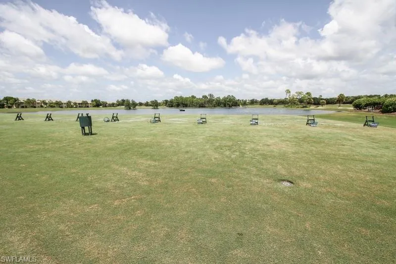UPDATED FIRST FLOOR CONDO WITH A VIEW OF THE GOLF COURSE, AND LAKE. THE REAR IS A SOUTH EXPOSURE. THE REAR SOUTH EXPOSURE IS THE 8th HOLE OF THE PRESERVE GOLF COUESE, there three 9 hole courses. There is availability if you would like to join golf. There is an additional cost to belong to the GOLF COURSE. The inside of the condo is all freshly painted in one neutrial cream color. The bedrooms, den, dining room, and great room have new Pergo wood flooringi installed in2024. The kitchen, two baths, laundry room, and lanai are white tile. New Heating and Air Conditioning unit in 2024, new hot water heater in 2022, and all new fans. All new blinds throughout….. Updated kitchen with white cabinets, stainless appliances, and granite counters. All new hurricane windows and doors, and sliding doors to lanai. New tiled roof, new landscaping, newly exterior paint. Driveway and walks all have brick pavers. STORM SHUTTERS ON LANAI. The one car garage has plenty of storage.New garage door opener system in 2025. Wedge Wood has its own pool and party room. THE STRAND COMMUNITY HAS IT ALL…..An Olympic size salt water pool, resort style pool, a full service spa updated in January 2025. The EXERCISE BUILDING HAS BEEN TOTALLY REDONE IN 2025. There are tennis courts, basketball court, bocce courts, pickleball courts, restaurants, and the list goes on. Just a short drive to the beach, grocery store, shopping, downtown Naples, Mercato Shopping Center, and the BEST THAT NAPLES HAS TO OFFER.. THE STRAND COUNTRY CLUB HAS JUST BEEN COMPLETELY REDONE INSIDE AND OUT…….. MOVE IN READY……..