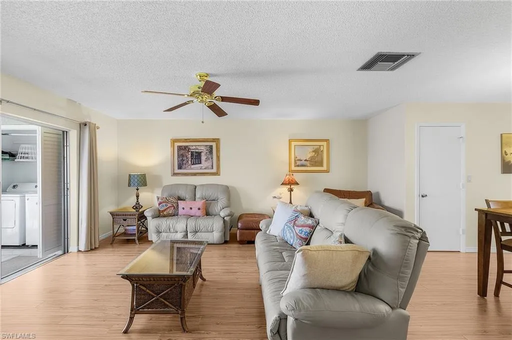 Discover stylish and low-maintenance living in this fully remodeled 2-bedroom, 2-bath condo located in a vibrant 55+ community Foxmoor. This home combines modern upgrades with the comforts of an active lifestyle, offering the perfect setting for your next chapter. This condo has been completely updated with high-end finishes, including NEW TILE, WINDOWS AND WOOD LAMINATE FLOORING, fresh paint, and modern lighting throughout. It’s move-in ready with all the work already done for you. The EAT IN kitchen boasts BRAND NEW cabinetry and WHITE appliances, and a modern backsplash. A functional layout makes cooking and dining a pleasure including a PASS THROUGH OPENING TO THE GREAT ROOM. The open-concept design connects the living and dining areas, creating a bright and airy space that’s perfect for entertaining or relaxing. BOTH BATHROOMS HAVE BEEN COMPLETELY RENOVATED with contemporary finishes, including new tile work and updated lighting. ENJOY THE OUTDOORS on your fully screened lanai overlooking the beautifully landscaping property. AND ITS SO CLOSE TO THE POOL! THIS CONDO NEVER FLOODED! Enjoy the perks of an active 55+ lifestyle with access to amenities such as a pool, gazebo, firepit and social events. CONVENIENTLY located near shopping, dining, International airport, medical facilities, and DOWNTOWN FT MYER. You’ll have everything you need just minutes away. Don’t miss this opportunity to enjoy a stylish, low-maintenance lifestyle in a welcoming 55+ neighborhood!