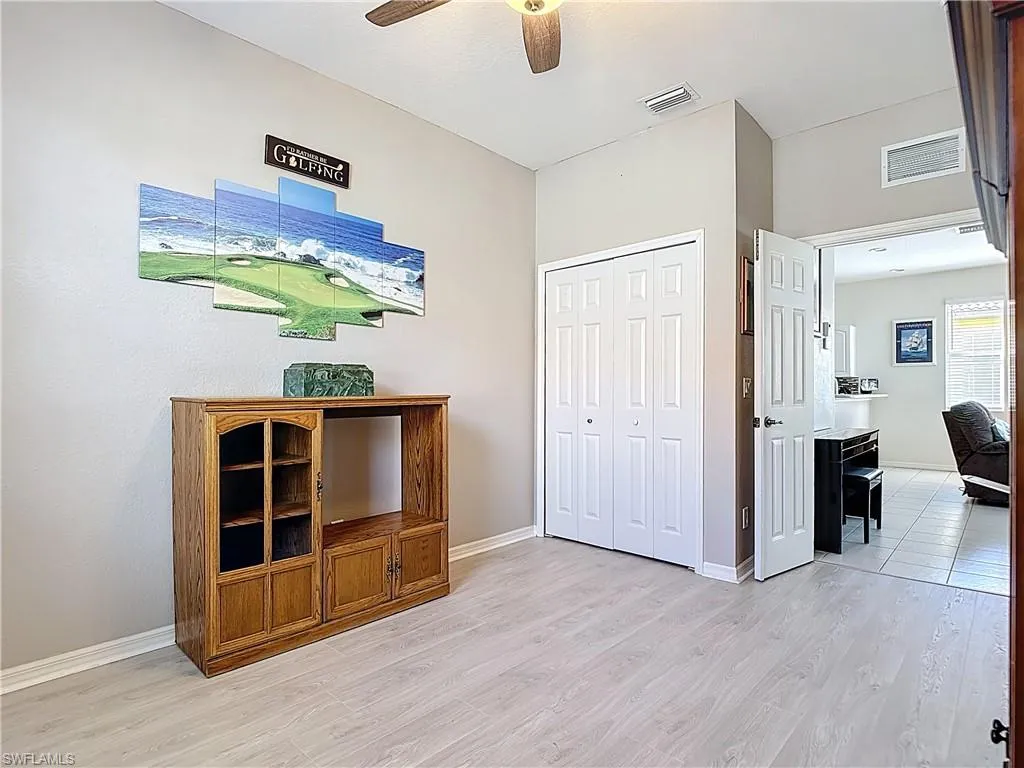 Welcome to resort-style living in The Fairways at HERONS GLEN COUNTRY CLUB, where external maintenance is taken care of for you. This Jasmine model POOL HOME offers scenic GOLF COURSE VIEWS overlooking the six tee box on the 13th hole of the award-winning Championship Golf Course. This home’s tropical landscaping and PAVER DRIVEWAY create wonderful curb appeal, while the large screened front loggia offers the perfect spot to enjoy your morning coffee and chat with neighbors out walking their dogs. Inside, you will find BRAND NEW LUXURY VINYL PLANK and tile flooring throughout the home. The kitchen is equipped with stainless appliances, Corian counters with tile backsplash, a double undermounted sink, and a breakfast bar that’s perfect for quick meals or entertaining. Both bathrooms shine with recent improvements including 2024 toilets and beautiful shower upgrades. The guest bath features a FRAMELESS GLASS door, while the master bath showcases a spectacular renovated walk-in shower complete with built-in NICHES and a RAIN SHOWER head that turns your daily routine into a spa experience. The indoor laundry area houses a Maytag washer and dryer set that are less than a year old. Additional features include modern ceiling fans in the living room and lanai, a Ring doorbell for added security, and double doors leading to the third bedroom. Step out back to your personal playground where the SALTWATER POOL features a PebbleTech finish, electric heat and a solar cover, with both the pump and heater less than three years old. Relax on your screened lanai and enjoy watching the golfers and the panoramic views. Roll down, accordion and electric shutters provide STORM PROTECTION and peace of mind, and there’s a GENERATOR HOOKUP with a 7250 running watt generator already in place for those rare occasions when you need backup power. Herons Glen offers an active social calendar, championship golf, tennis and pickleball courts, a state-of-the-art fitness center, and its own restaurant and lounge. Whether you are looking to stay active or simply relax with friends and neighbors, you will find everything you need right here in this welcoming Southwest Florida gated community.