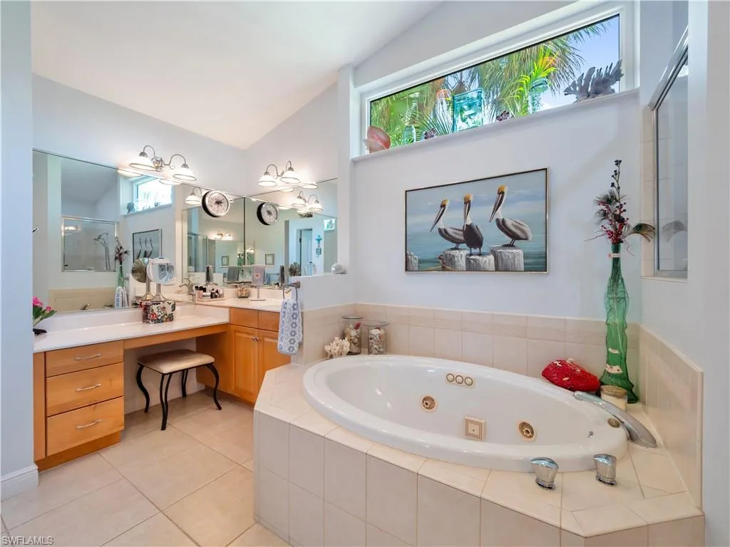 Welcome to Coconut Creek, where shady verandas and welcoming front porches bring the elegance of Old Florida to life. This beautifully custom-built home blends classic Southern charm with modern conveniences, offering a lifestyle that’s both relaxed and refined. As you step through the front door, you’re greeted by a formal living room that sets the tone for the home—warm, inviting, and ideal for entertaining. Wood and tile flooring flow throughout, complemented by vaulted ceilings, large picture windows, and plantation shutters that add a timeless sophistication to every room. The oversized family room offers a cozy space to unwind and opens through French doors to a spacious screened verandah and pool area, all overlooking a tranquil lake. The outdoor space is designed for easy living, featuring roll-down Kevlar hurricane screens, a resurfaced pool with new waterline tile, elegant travertine pavers, and updated pool equipment within the past three years. The kitchen has been completely renovated with gorgeous finishes and a layout that caters to both everyday cooking and entertaining. A spacious combined laundry and pantry room adds convenience and ample storage. The formal dining room provides a perfect setting for gatherings and celebrations. The primary suite is a private retreat, featuring a jetted tub, dual vanities, a walk-in shower, and a custom built-in closet system. Two additional guest bedrooms are equally comfortable, while the updated guest/pool bath includes new flooring, cabinetry, and a tub/shower combination. Every bedroom closet in the home has been outfitted with built-in organizers, maximizing storage and functionality. This home has been thoughtfully upgraded to enhance both comfort and peace of mind. Hurricane-impact windows have been installed throughout, along with a newer hurricane-rated garage door. The garage includes new epoxy flooring, a mini-split AC system for year-round comfort, and a new side entry door. The water heater was replaced within the last three years, and new decking on the front porch adds curb appeal that matches the home’s charming aesthetic. Situated off McGregor Boulevard, the property offers quick access to Southwest Florida’s beautiful beaches, premier shopping, dining, and entertainment. Notably, the home experienced no interior flooding and has been meticulously maintained and modernized to meet today’s standards without sacrificing its Old Florida character. This is a rare opportunity to own a beautifully updated home in one of the area’s most desirable communities.