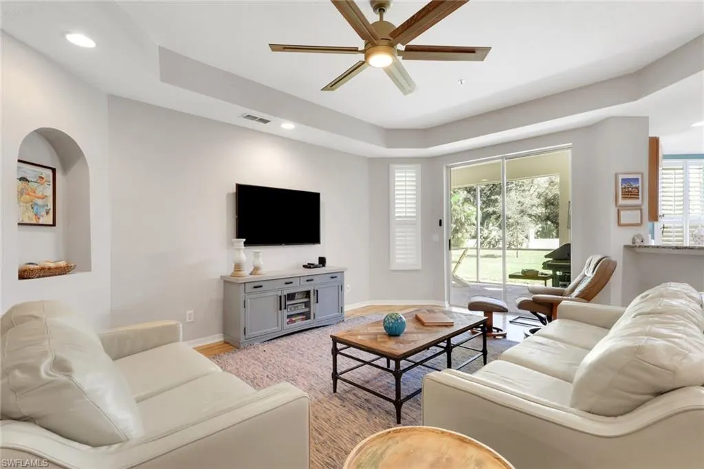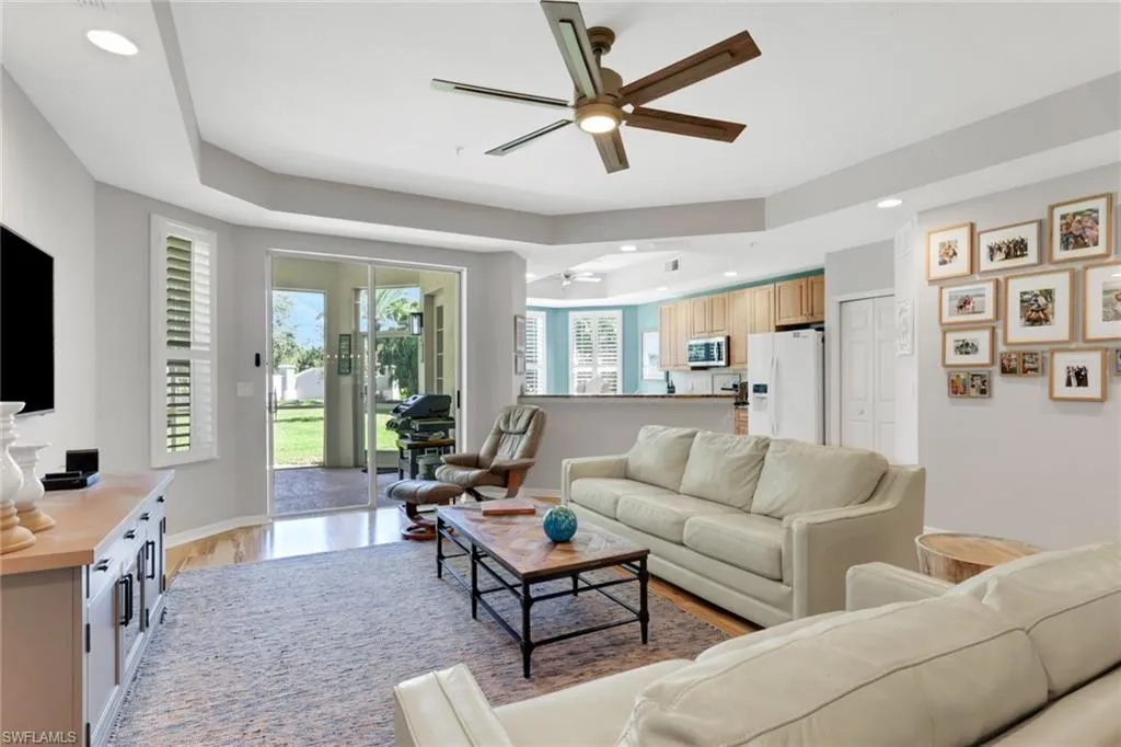 Situated on a desirable homesite with an expansive outdoor area extending beyond the oversized lanai, this residence offers over 1,900 square feet of maintenance-free living. Recently updated with brand new roofs and fresh exterior paint throughout the community, the home truly needs to be seen to be appreciated. The interior features both a spacious primary suite with a sizable walk-in closet and an en suite bath complete with dual sinks, a Roman soaker tub, and a walk-in glass shower, as well as a junior primary suite with its own private bath and walk-in shower. This three-bedroom first-floor condo offers a bright, open layout ideal for entertaining or everyday living, with water, cable, and internet all included in the condo dues—making it the perfect choice for a full-time residence or low-maintenance winter retreat. Located west of US-41, The Meadows of Estero offers a resort-style pool, fitness center, and clubhouse, all just minutes from Coconut Point, fine dining, and the Gulf beaches.