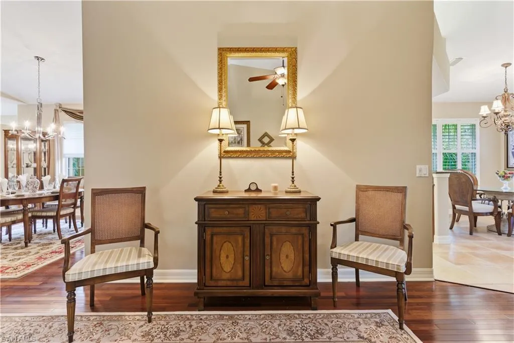 Step inside to soaring ceilings and an abundance of natural light flowing through multiple windows. The main living areas feature real hardwood floors, adding warmth, elegance, and a timeless appeal to the space. The kitchen is both functional and inviting, featuring built-in cabinetry, ample storage, and a cozy eat-in area. From here, access your screened lanai (with electric hurricane shutters) for morning coffee or evening wind-down, all while overlooking peaceful, green preserve landscaping.