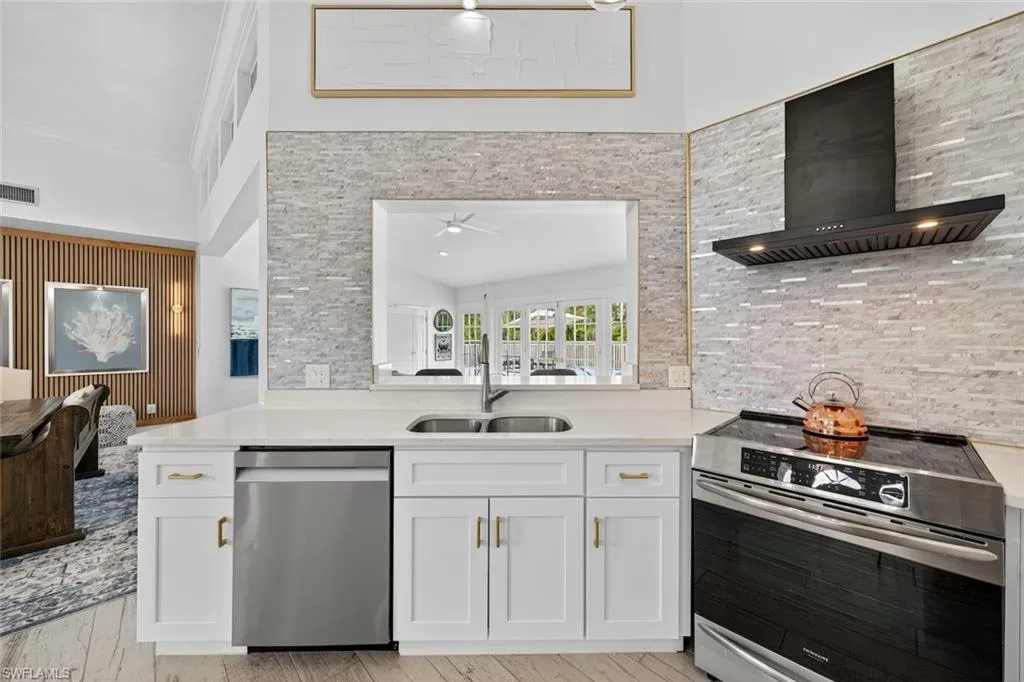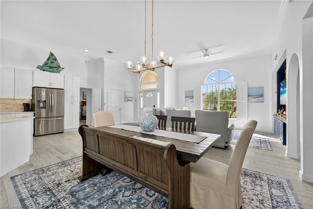 Casual coastal elegance best describes this tastefully updated, meticulously maintained, Turnkey-furnished 3-bedroom, 2.5-bath pool home in the Harbour Palms community, just minutes from Fort Myers Beach and Sanibel Island. The 2400 + sq ft, light and bright, open floor plan with high ceilings features split bedrooms for privacy, with a spacious master bedroom and bathroom, plantation shutters, crown molding, and tile plank flooring throughout, new living and dining room accent walls, an updated open kitchen with soft close drawers and cabinets, and a bright, sunny family room with a wall of French doors, protected by electric storm shutters, all leading to the big 40′ x 20′ heated pool with generous deck space for grilling and entertaining, plus an outdoor shower. The rear of the 1/3-acre lot is bordered by soaring palms, providing pool-area privacy. Updates include new interior paint, new A/C, an updated pool bath, new bathroom vanities and fixtures, new light fixtures throughout, new door hardware, new plumbing upgrades, new backup generator with electric service connection, new well pump and irrigation system, new pool deck no-slip epoxy paint, new landscaping, new flood barriers, recent water heater, and more! Harbour Palms is a 21-home community with low HOA fees providing lawn care, conveniently located in the Iona area, just minutes from a variety of restaurants, Publix, shopping, marinas, golf courses, and medical services. This is an excellent opportunity to own your piece of paradise and start enjoying the wonderful SWFL lifestyle today!