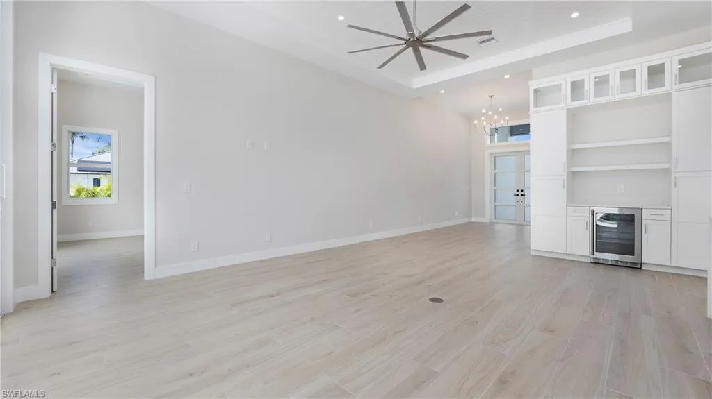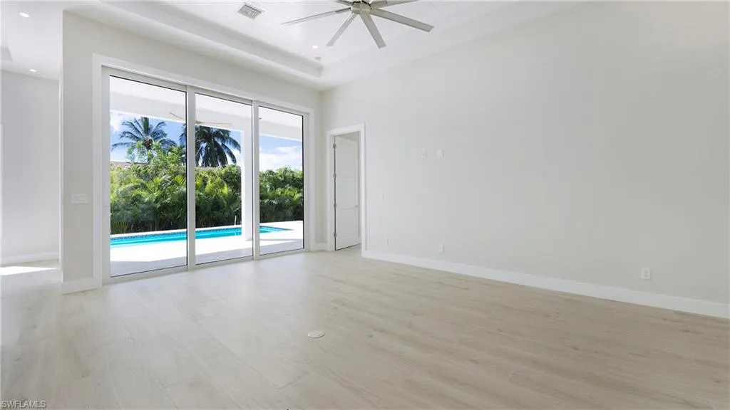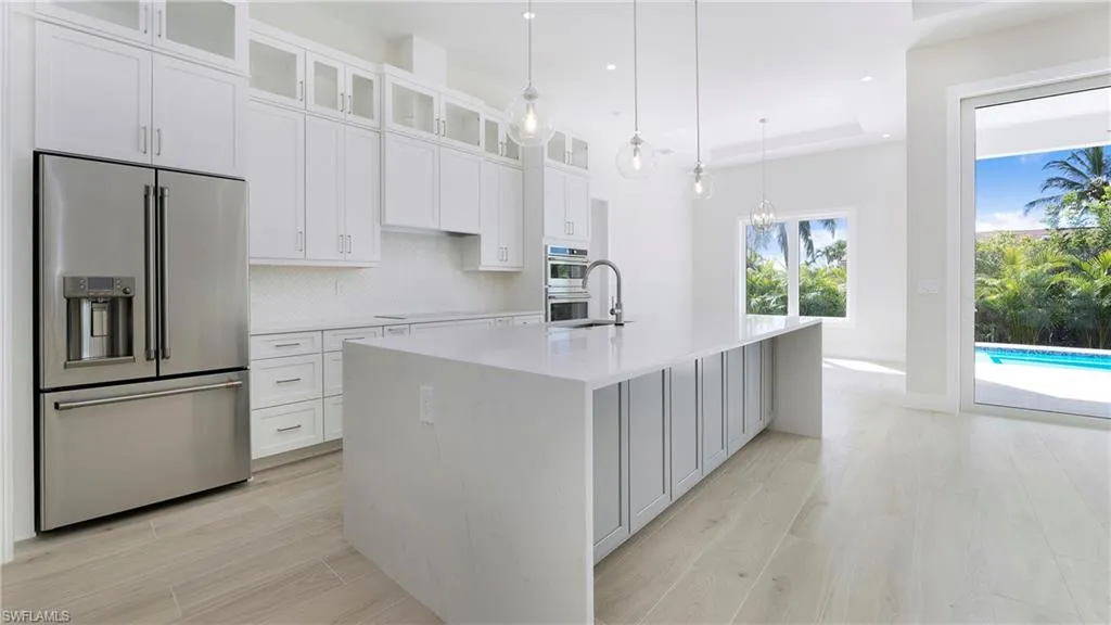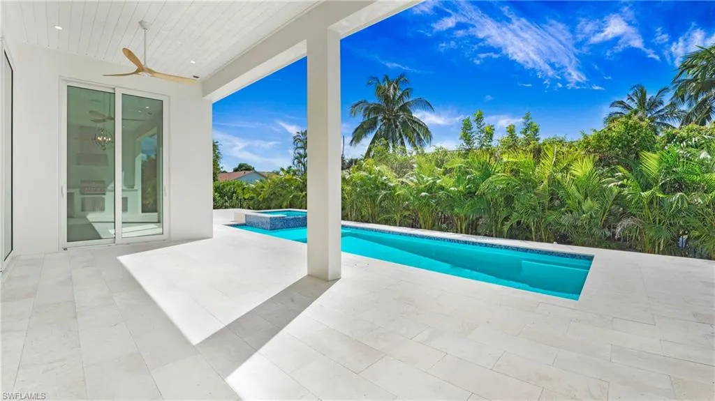 Just Completed Brand New Construction! This luxury home is situated perfectly on an oversized corner lot with western exposure and incorporates an open concept including 4 bedrooms, 3 full bathrooms, large great room, kitchen and dining area overlooking the saltwater pool and spa, pool bath, outdoor kitchen with grill, vent hood, beverage fridge, and sink, and 2-car garage with an epoxy floor. The inviting, airy design has white kitchen cabinets, quartz countertops, large gray island with waterfall countertop, upgraded GE Café appliances, and tile flooring throughout. The Owner’s Suite has two custom, walk-in closets, separate vanities, huge double-entry tile shower, soaking tub, walk-in linen closet, and private water closet. This home boasts high ceilings, 10’ tall sliders throughout, large impact windows, and covered lanai. The many upgrades include custom closets in all 4 bedrooms, upper kitchen cabinets and cabinets on both sides of the island, beautiful fans and lighting, cased windows and doors, tray ceilings with shiplap, foam insulation, shellstone on the lanai, tropical landscaping, and much more. This incredible beach house is centrally located and is just minutes to the white sand beaches of Marco Island, parks, tennis and pickle ball courts, golf, shopping, dining, schools, and the YMCA. Welcome to paradise!