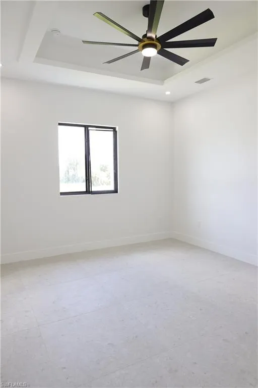 Inside, enjoy 2,267 TOTAL SQ FT (1,638 SQ FT UNDER AIR) with 3 BEDROOMS + DEN, 2 FULL BATHS, and a 2-CAR GARAGE finished with epoxy floors. Step through the front door to 10-FOOT CEILINGS, a 12-FOOT COFFERED TRAY CEILING in the living room, and 24”x48” PORCELAIN TILE THROUGHOUT—NO CARPET! Walls of IMPACT WINDOWS & DOORS fill the home with light while keeping you safe, efficient, and worry-free.