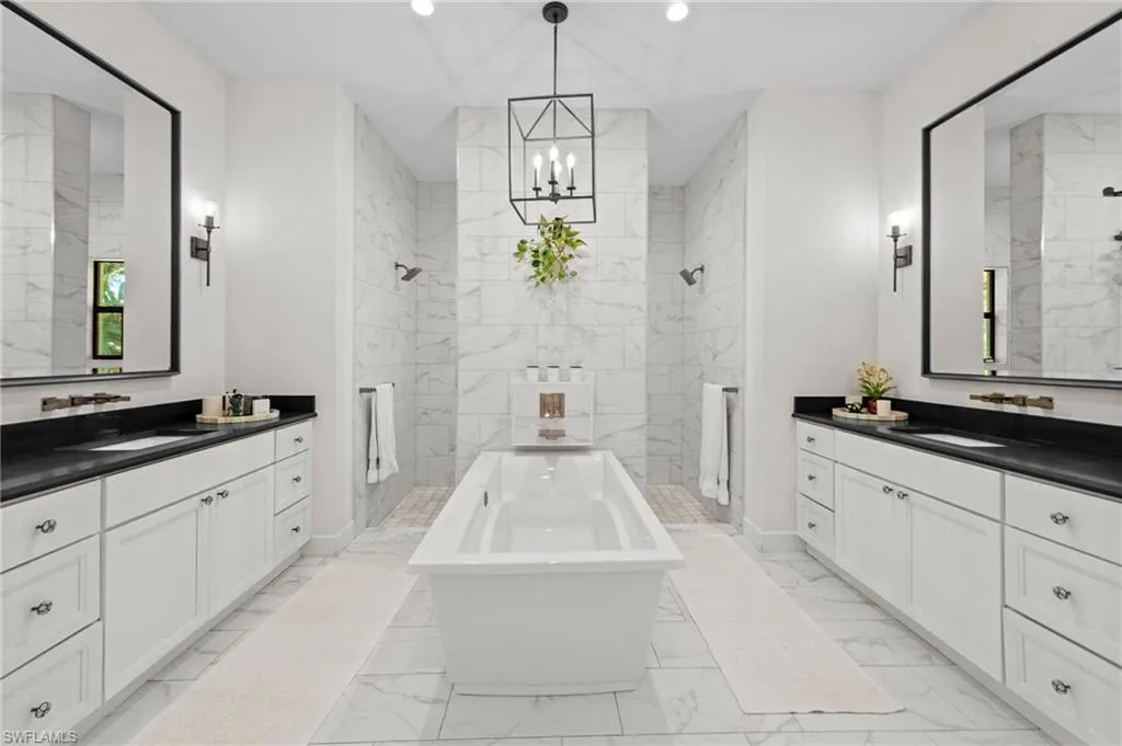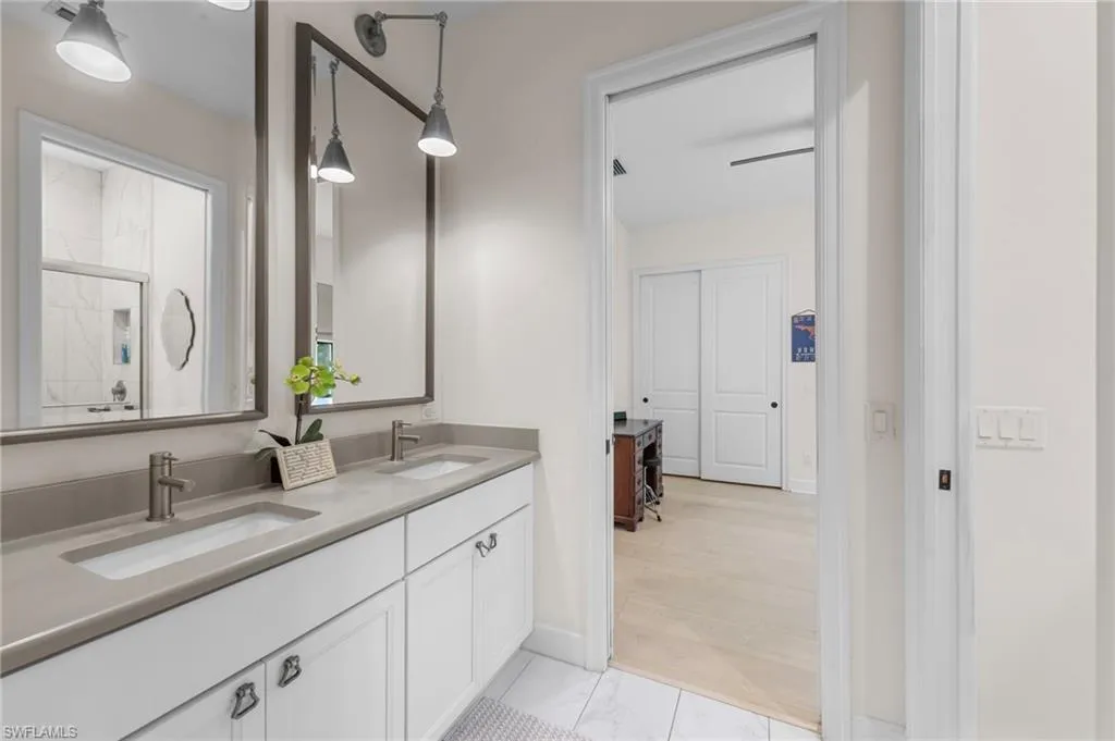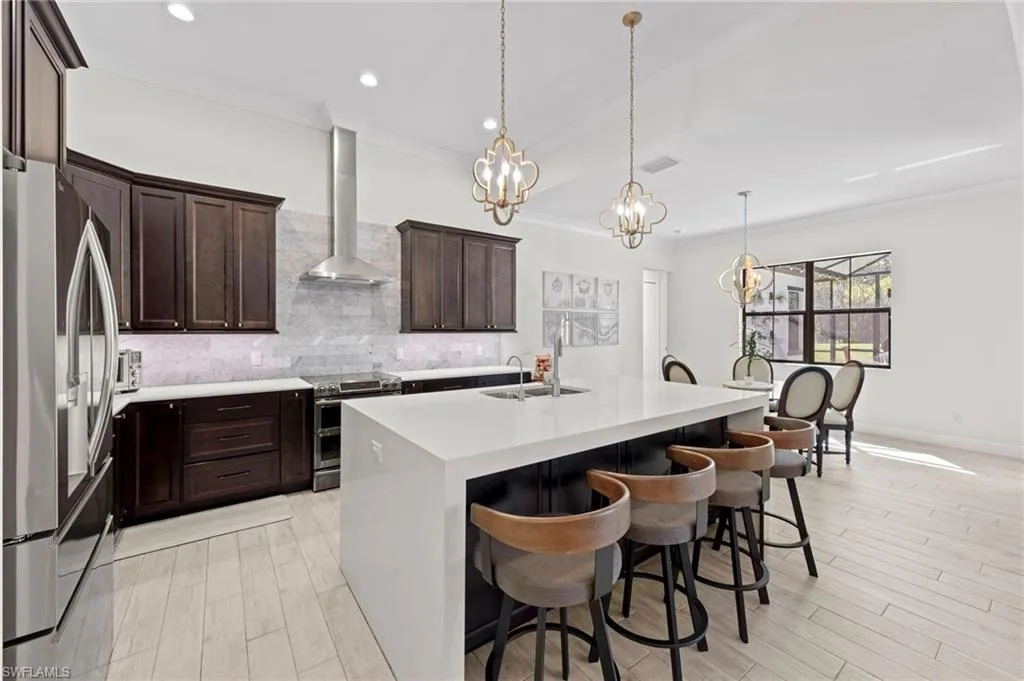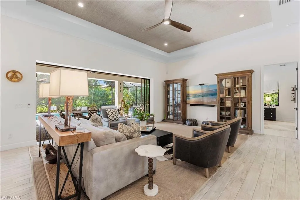 Experience the charm of this exquisite newer construction home nestled in the desirable Logan Woods community. This residence boasts an inviting open-concept floor plan that encompasses 5 spacious bedrooms plus a den, alongside 3 full bathrooms and a 3-car garage. One of the standout features of this home is the custom saltwater pool, complete with a beautifully designed flow-over spa, perfect for relaxation and entertainment. Step inside to discover the elegance of 12-foot tray ceilings that enhance the living area, creating an airy and sophisticated atmosphere. The home is designed for seamless indoor-outdoor living, featuring pocket sliding doors that open up to the lanai, allowing for effortless transitions between the two spaces. The kitchen showcases custom solid wood cabinetry. Additional highlights include a paved driveway, the efficiency of whole-house SOLAR POWER, a spacious mudroom, and an oversized garage finished with epoxy flooring. The property is enveloped in lush, tropical landscaping, creating an inviting and serene environment that complements the home’s design. With its ideal southern exposure, this residence offers the perfect balance of indoor and outdoor living. Logan Woods is located in the heart of Naples, just a short drive from the pristine Vanderbilt Beach, Mercato shops, downtown, and the RSW airport. This community is known for its top-rated school zones and provides the ultimate in privacy with its expansive lots. Don’t miss your chance to schedule a tour and see for yourself the beauty and comfort this remarkable home has to offer!