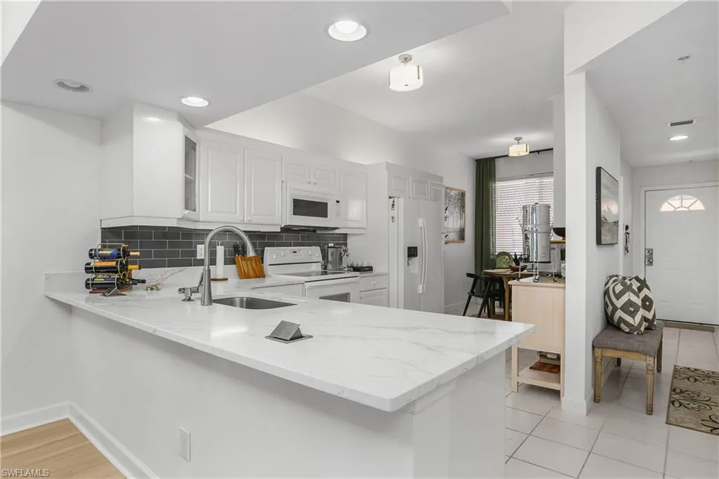 Stunning Turnkey Condo! Step into luxury with this completely renovated 2-bedroom, 2 – bath condo that perfectly blends modern elegance and coastal charm. Spacious living area that features electric fireplace, freshly painted neutral tones, luxury vinyl flooring that flows seamlessly throughout. Upgraded kitchen with modern cabinetry, Quartz counter tops, Designer finishing’s, both bathrooms have been beautifully updated. Relax on your private lanai and take in the stunning water view & fountain, outdoor kitchen, storm shutters, 11 ft. ceilings, One car garage right outside your Condo. Enjoy a Resort lifestyle, amenities include Lazy River Pool, club house, lap pool, pickle ball, tennis courts, bike riding, walkways, many social events offered throughout the year. Centrally located close to Marco Island, Isle of Capri & Naples for your pleasure Beaches, Boutiques, Restaurant’s & Entertainment. Full-time residence, vacation getaway, or investment property, this condo delivers the perfect blend of comfort, style & convenience in a resort setting.