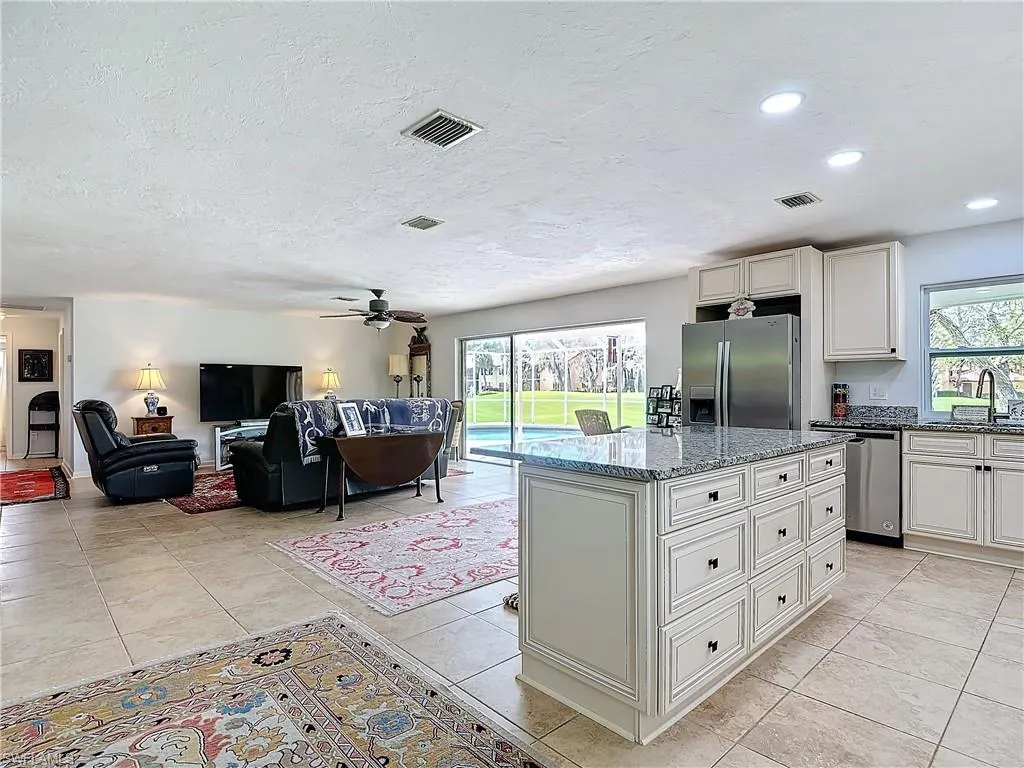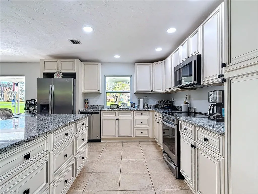This 3BD/2BA pool home in the Lakewood community is a must see. You’ll enjoy the golf course views from the pavered patio in front of the home as well as both lake and views of the Glades golf course from the pool/lanai area in back of the home. Desirable open floor plan with pocket sliding glass doors leading to the lanai. Features include tile flooring throughout, double pane windows and a renovated island kitchen with granite counters, lots of cabinet space, soft close drawers and stainless “smart appliances”. Bathrooms have been remodeled with new shower tiles, vanities, toilets, mirrors and light and plumbing fixtures. The roof was replaced in 2018 and the water heater is four years old. There are also hurricane shutters included as well an an easy generator hook-up and an impact door leading from the garage into the home. This home was the original model home for the Lakewood 1 community because of the premium lot. Lakewood is a dog friendly community and has low fees with cable/internet and irrigation water included. Just 4 miles from 5th Avenue shopping and entertainment in downtown Naples as well as beautiful beaches. For golfers Lakewood Country Club has a variety of memberships available including a seasonal golf program.