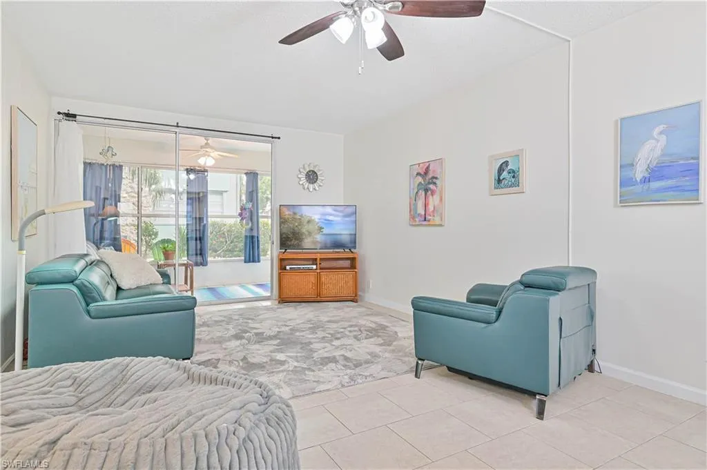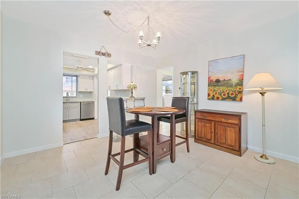 Welcome to Country Club Estates! This light and bright ground-floor condo offers an inviting blend of comfort, convenience, and Florida charm in the heart of Cape Coral. Featuring 2 bedrooms and 2 full baths, this spacious residence showcases tile flooring throughout and an abundance of natural light from large windows that fill the home. The updated kitchen includes a breakfast bar, plenty of cabinet and storage space, and a cozy eat-in dining area—perfect for casual meals or entertaining guests. Step outside to the screened lanai and enjoy your morning coffee while overlooking the peaceful, landscaped surroundings.