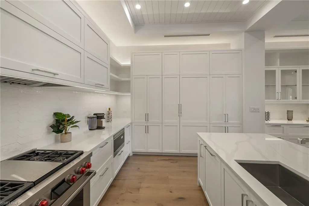 Imagine stepping out your door for a quick stroll with your pup or a short walk to Naples’ best attractions. From 5th Avenue’s upscale boutiques and gourmet dining to the sandy shores of the Gulf of Mexico, everything is just minutes away. The open-concept layout is enhanced by expansive 9-foot sliding doors, flooding the space with natural light and creating an effortless indoor-outdoor flow. The expansive primary suite features walk-in closets and a stunning ensuite bath. Kick back on your spacious lanai, offering the perfect spot to unwind with a sunset view. The kitchen, a true entertainer’s dream, boasts professional-grade appliances and elegant finishes, overlooking the inviting living and dining areas.
