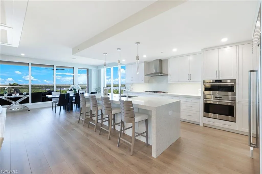 Stepping off the private elevator into this beautiful home your eyes immediately focus on the very special views of Gulf and Bay through sparkling floor to ceiling windows as the END UNIT location expands and enhances the views. The thoughtful selection of fine finishes and attention to detail is evident throughout the living / dining rooms and kitchen. The kitchen features Chef-grade Wolf and Subzero appliances, pantry with prep area and a large island destined to be the hub of social and family gatherings. The luxurious Owner’s Suite wall of windows provide natural light and limitless views. Owner’s suite also features a spa-like bath and custom fitted walk-through closet. The beautifully appointed den/home office and two full en-suite guest rooms complete the package. Kalea Bay Tower 200 features a rooftop pool with sundeck, fitness area, covered gathering space and gas grilling areas. The full-service Club at Kalea Bay features a new wellness center two gourmet restaurants, tiki bars, 3 separate pools, an active tennis / pickleball program, well appointed Guest Cottages and much more.