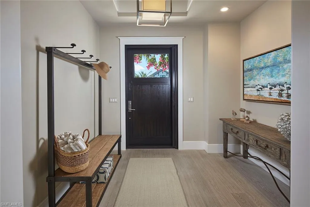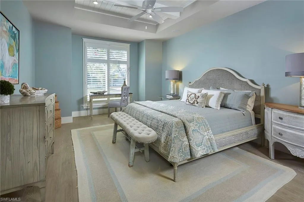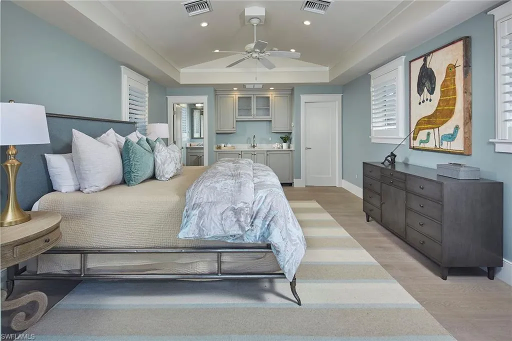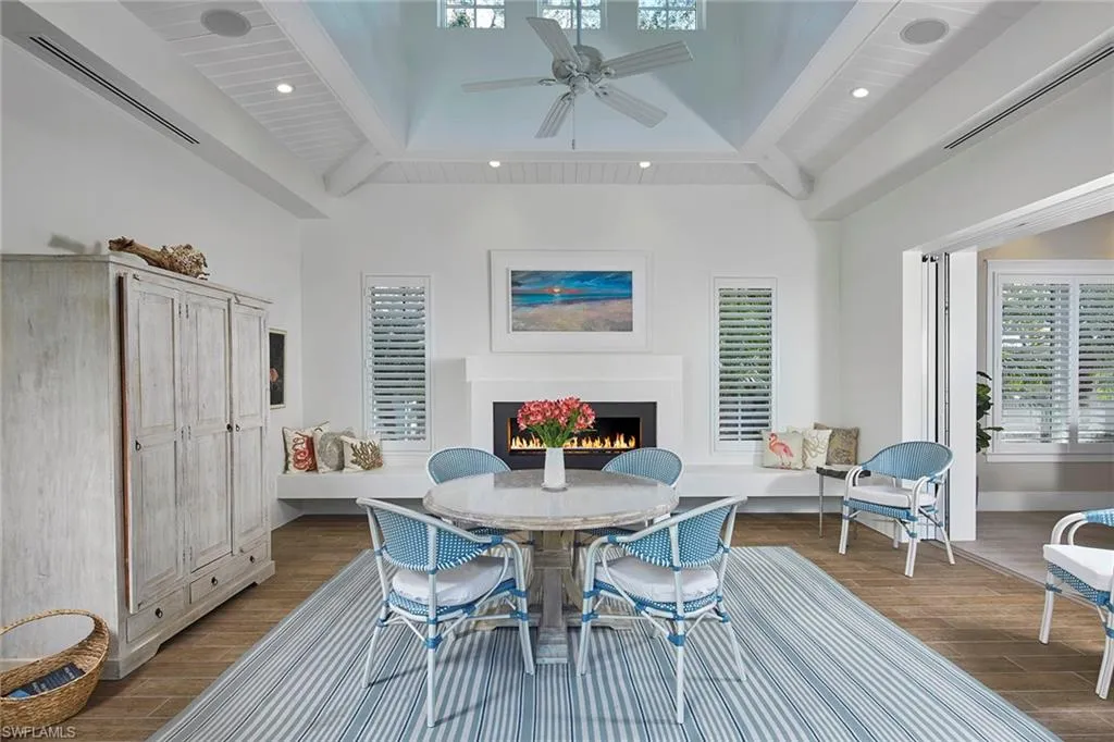 In the heart of Old Naples on sought-after 11th Avenue S, this delightful cottage-style residence designed by MHK offers the ultimate in coastal living. Just a short stroll from the white sandy beaches and the vibrant shops and dining of 3rd Street S, this home is ideally located to embrace the best of Naples. This beautiful home makes an instant first impression, walking past its white picket fence onto the charming covered porch framed by vibrant bougainvillea. Inside, the desirable large foyer leads to an open living space that features soaring ceilings and a bright, airy atmosphere that flows effortlessly into the gourmet kitchen. Equipped with Sub-Zero appliances, a gas range, a wine refrigeration, an ice maker and ample counter space, it’s a chef’s dream. The heart of this home is its inviting pool area with its spa and water features, full outdoor kitchen, separate pool bath, and versatile lanai/family room area, seamlessly blending indoor and outdoor living. The home’s serene primary suite is on the first floor, with an elegant bath and expansive walk-in closet. The second floor features two beautifully appointed bedrooms with en-suite baths and a versatile loft area ideal for a family room, game room or quiet retreat. Above the garage with a separate outside entrance, the fourth guest suite offers a private oasis showcasing a morning bar with an under-counter refrigerator and a private balcony, ideal for enjoying Naples’ warm, sunny mornings. Offered furnished with tasteful decor, this coastal retreat is ready for you to move in and live your dream life in Old Naples.