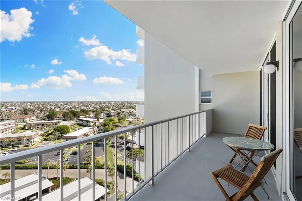 A bird’s eye view of beautiful Marco Island beckons with this one bedroom, one and a half bathroom condo at Admiralty House. This sensational Island vista truly shines; take a seat on the open lanai and gaze upon countless palm trees, iconic canals, and a plethora of charming Island homes. The unit’s floor plan conveys a well-planned project, with a spacious living room and bedroom making the most of the available square footage. Notable updates include granite countertops in the kitchen and full bathroom, newer flooring, and stainless steel appliances. Impact windows and sliders installed to protect your paradise. Carpet and tile throughout. Common laundry area on the same floor as the unit. Amenities include a barbecue area, bike path; clubhouse with reading library, common elevator, stunning community pool and tennis courts. A dazzling unit in a spectacular building deserves a look – come see for yourself!