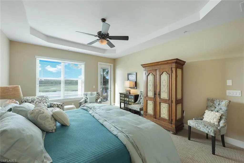 Majestic southern lake and golf course views are only part of what this beautiful corner Carriage Home has to offer. The second floor Medallion Model with private elevator is impeccably decorated and furnished in soothing neutral tones and being offered fully turnkey for total convenience. All brand new impact windows and doors give you peace of mind and quiet living, along with new A/C system! The family room is open to the kitchen that includes a morning room for breakfast or lunch aside tropical views. The stacking sliding glass doors open onto a spacious screened lanai bringing the outside in. The primary oversized bedroom also has direct access to the screened lanai as well as room for a sitting area. Curl up with your favorite book and enjoy the fresh air and spectacular views! The Quarry Beach club has been recently renovated and all residents have access state of the art restaurants, Tiki Bar, Resort and Lap Pools, 5 Pickle Ball Courts, 5 Tennis Courts, 3 Bocce Courts and a Two Story Fitness Center with many classes and personal trainers. The Quarry also offers a full time Tennis Pro and Full Time Activities Director for full time fun! The Hurdzan and Fry designed Golf Club is exceptional and offers private membership but is optional. Enjoy 18 holes of pristine golf and immerse yourself in the comradery of an active club for all levels. The Golf Club has a newly renovated grille room, terrace or formal dining without venturing outside of the gates. It’s truly vacation style living in the heart of Naples. Only 25 minutes to RSW Airport or Downtown Naples and is close by to Beaches, Founders Square, The Mercato and many other convenient shoppes and restaurants. You’ll love it here!