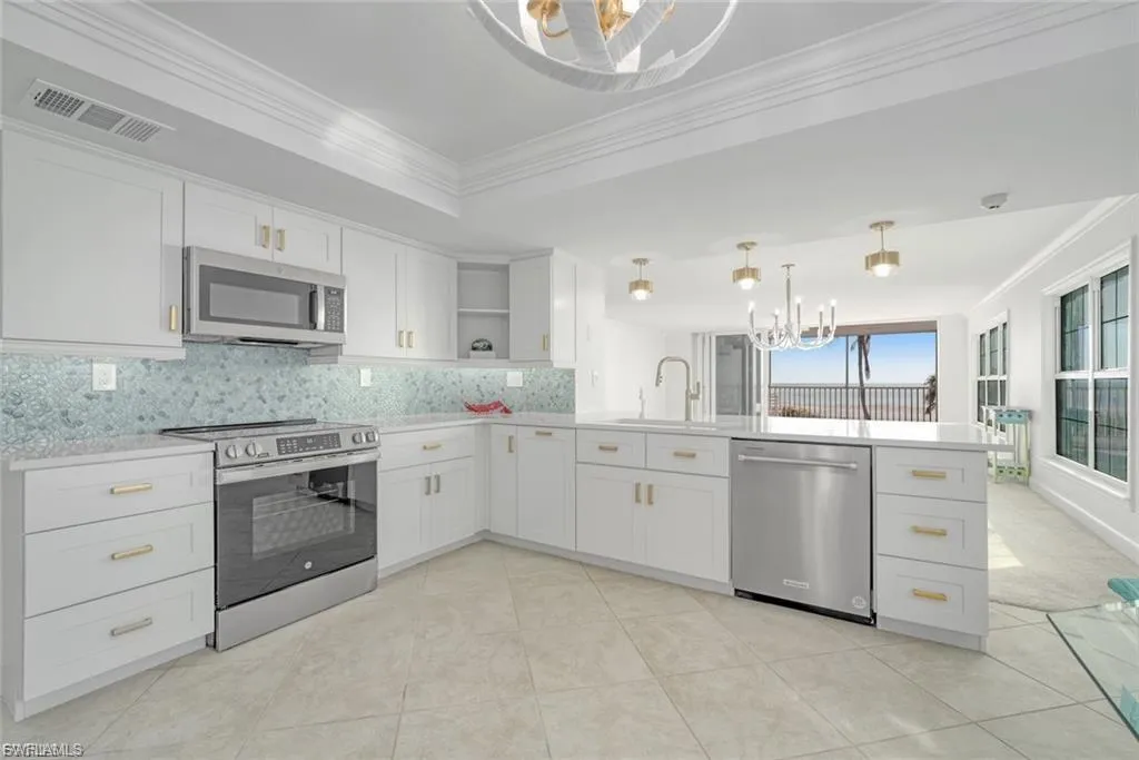 Wow! What a sunset! Positioned on the west side of the building with unobstructed views down the beach of West Gulf Drive rests this exceptional unit with 3200 ft.² of living space offering three bedrooms and three full baths in addition to a den. This unit has been expertly remodeled from the studs with 100% new hurricane-rated windows and doors throughout and is ready for occupancy this season. Every aspect of this reinvention has been well thought out with the use of today’s finest materials for all of the appointments. The primary retreat offers stunning views, copious closet space, and a bath with separate soaking tub and shower. All suites are sizable, the east bedroom with ensuite provides views overlooking the pool from the private lanai. The spacious lanai runs the length of the unit beachside with easy access to the stairs leading you to the private beach path. Seascape is a small complex consisting of only 18 units along the coveted Gold Coast on Sanibel Island. All of the common areas have been refurbished including elevators, swimming pool, landscaping, boardwalk, tennis court, lighting, hallways, etc. Landscaping is underway. Two covered parking spaces included.