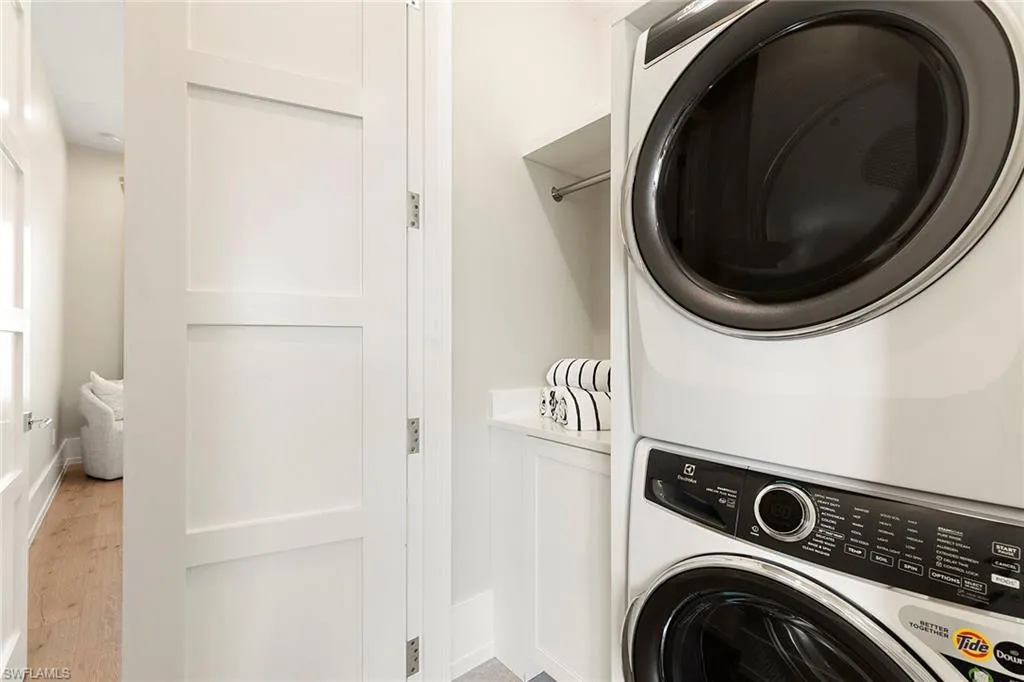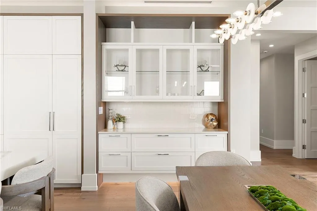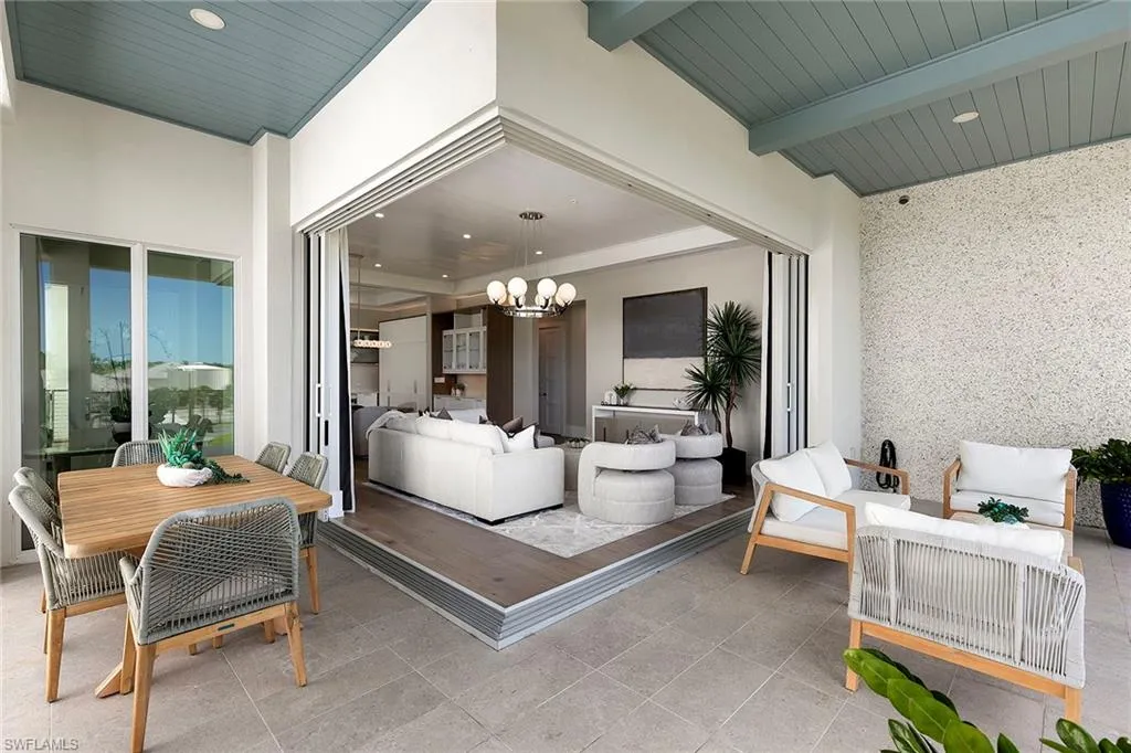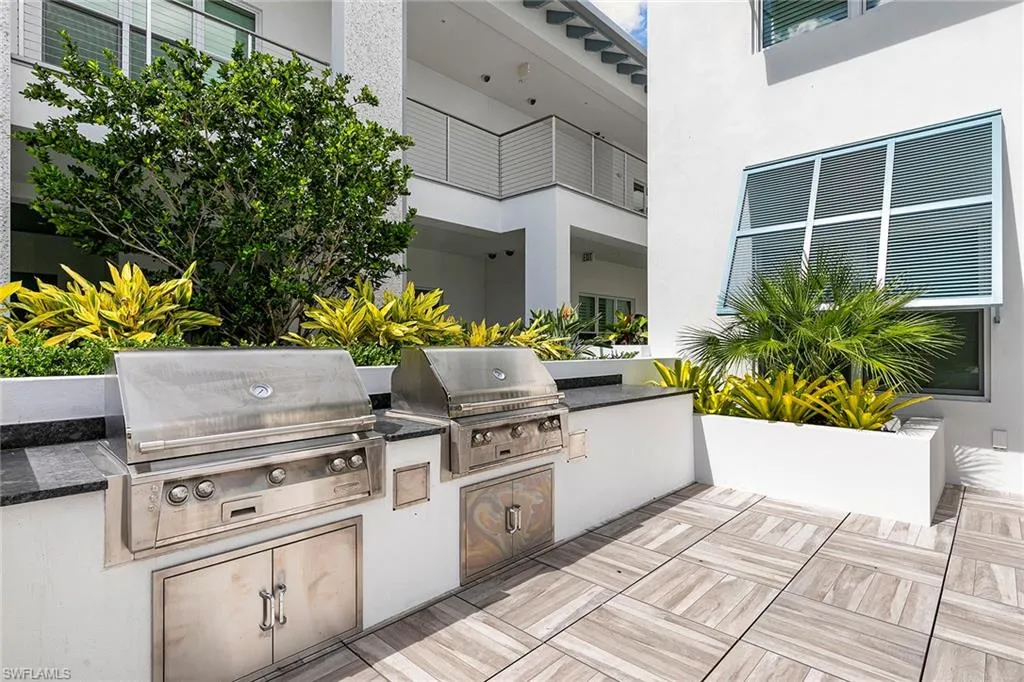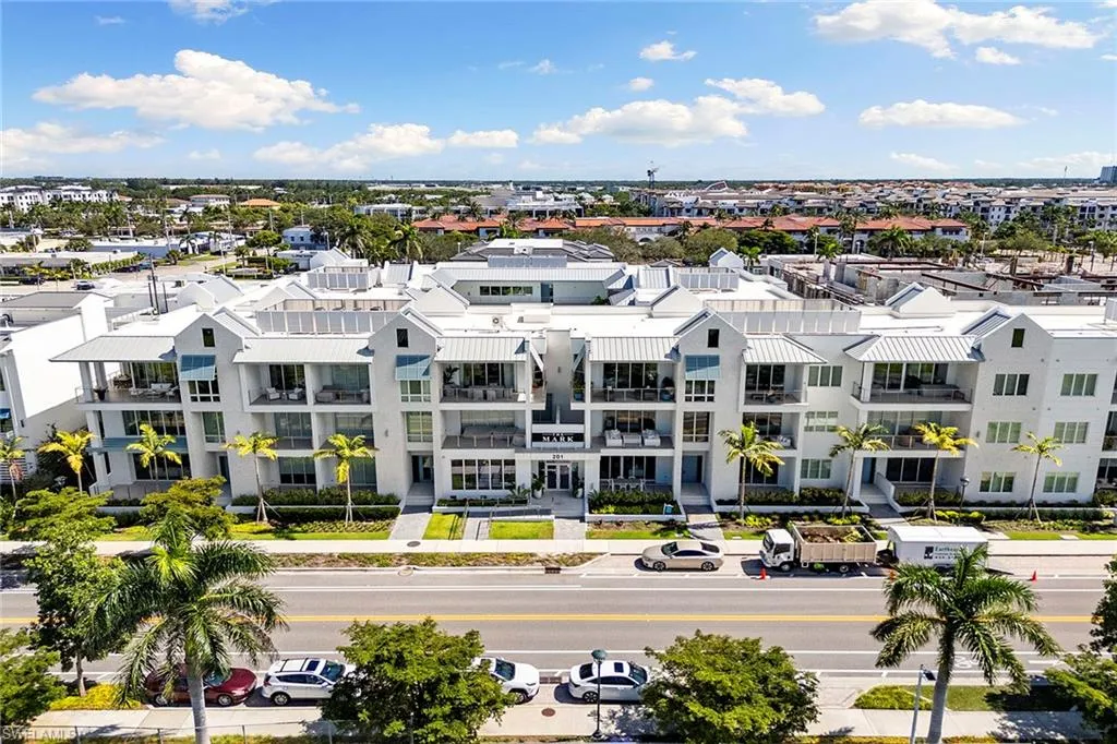 Live the ultimate downtown Naples lifestyle at The Mark on 8th. This top-floor corner residence captures the perfect balance of coastal elegance and luxury city living. Ideally located in the heart of Olde Naples, just two blocks from renowned 5th Avenue S. for world-class dining, boutiques, galleries, and special events, and moments from beach access and parks. Spanning 1,939 square feet, the Madison floorplan offers three bedrooms, three and a half baths, and soaring 12-foot ceilings that fill the home with natural light. Expansive 9-foot pocketing sliders open the bright, open-concept great room to a wraparound balcony, an entertainer’s dream for sunsets or gatherings, while a private terrace off the primary suite provides a second outdoor retreat. Refined interiors showcase Legno Bostone wide-plank oak flooring, Wolf & Sub-Zero appliances, and designer finishes throughout. Two assigned covered parking spaces are included. Residents enjoy resort-style amenities, including a heated pool and spa, community room, fitness center, sauna, golf simulator, and outdoor grilling and fire-pit lounge. Pets are welcome. Designed by MHK Architecture and Charles Design Studio, The Mark on 8th blends sophisticated contemporary architecture with convenience and a walkable downtown address in vibrant Olde Naples.