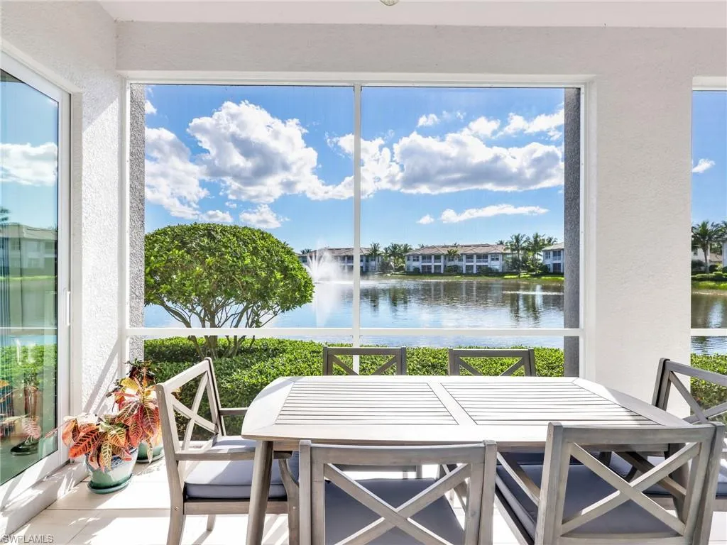 Elegance meets comfort in this beautifully appointed turnkey furnished 2 bedroom + den, 2.5 bath carriage home w/ a 2 car garage & expansive Southern exposure lake view nestled in the prestigious Signature Club at Lely Resort (one of the newer sections!) This first-floor end unit offers effortless living w/ a spacious great room, split-bedroom layout & a Southern exposure that fills the home with natural light. Designed for both everyday luxury & entertaining, the home features a gourmet eat-in kitchen with quartz counters, stainless steel appliances, gas cooktop, double wall oven, paneled range hood, marble tile backsplash, under cabinet lighting & soft close cabinets all framed by large windows w/ custom drapes for added privacy and style. The oversized primary suite includes a glass door to the screened lanai, two walk-in closets (one extra-large), gray quartz counters, dual sinks, freestanding soaking tub & a walk-in shower w/ floor-to-ceiling tile. Additional highlights: crown molding, 8-foot doors, 12″ x 24″ tile flooring w/ carpet only in the primary & second bedroom, a wet bar in the dining area with built-in cabinetry and backsplash, IMPACT RESISTANT windows and doors, glass front door with a sidelight, 2 car garage w/ an epoxy floor and a large laundry room with GE washer & dryer, utility sink & built-in cabinets. The expansive lake view w/ water feature adds a serene backdrop to the oversized lanai accessible from both the great room/dining area & primary bedroom. Residents enjoy full access to world-class amenities at the Players Club & Spa that is within walking distance & membership is required. The Players Club amenities include a resort-style pool w/ expansive pool deck, family pool w/ tiki huts and waterfall, a lagoon pool w/ waterfall, lap/fitness pool, sand area w/ tiki huts & whirlpool spa. Dining options include the elegant Club Dining Room, casual social Grill Room & Courtside Marketplace at the tennis courts. In addition there is an outdoor fireplace area, private dining/meeting room, terrace & verandah dining, tiki poolside bar & grill, active social calendar with concerts, day trips, seminars, social group clubs & games. The 6,000 sq. ft fitness center offers fitness classes, personal training, & an on-site Physical Therapist. Spa services include beauty treatments, manicures, pedicures & massages. For the sports enthusiast there are 4 bocce courts, 13 Har-Tru tennis courts including a stadium court with seating pavilion, 4 pickleball courts, sports clinics, sports pro shop & billiards room. Additionally there is a computer center, gaming/theatre room, dog park & off season reciprocal club privileges. Enjoy 2 public championship courses that are attached to Sam Snead’s Cafe & a Pro shop. Limited full golf memberships are also optional & available for the championship private course. Much to enjoy! This property provides maintenance-free living & delivers resort-style luxury in one of Naples’ most sought-after communities!