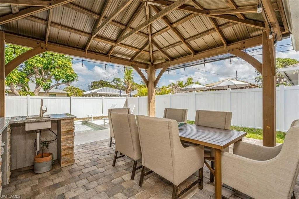 Step outside to your resort-style backyard oasis, complete with a brand-new pool, covered lanai, outdoor kitchen, and charming gazebo — perfect for sunset gatherings or quiet afternoons in the Florida sun. The fully fenced yard features lush landscaping and luxury outdoor lighting, creating a serene ambiance for every occasion.