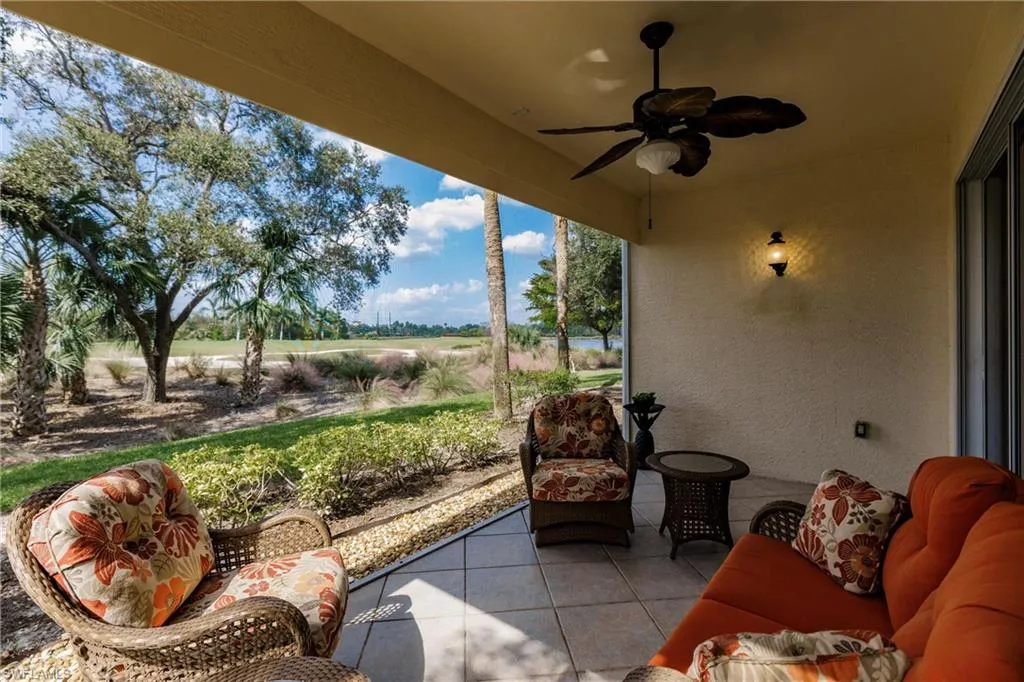 If you’ve been waiting for a main floor condo with a two-car garage on the golf course, this property has so many updates, and has one of the best views of the fairway on Old Orange #5! The sellers have already done the hard work – With a new roof in 2021, quartz in the kitchen and baths, a custom kitchen pantry, a new fridge and microwave, both the range and dishwasher are under 5 years old, GR crown molding, 2022 carpeting in the bedrooms and den, new fixtures, a frameless MB glass shower and walk-in closet shelving. The garage has double overhead storage racks. But the best part may be sitting on the tiled lanai with an unobstructed sunset view through the ‘picture’ window super-screen overlooking the southern oaks bordering the par 5 fairway – beautiful! There’s even a retractable sun screen! Idlewild has its own Community Pool for its residents just a block away. If all that isn’t enough to sell you on this coach home, Verandah Members enjoy two championship golf courses, pickle ball, tennis, bocce, an attended fitness center overlooking a resort-style pool and free kayaking at our own Orange River launch. Blossoms offers lively, but casual, outdoor riverfront dining while the River House is smart casual with a perfect after-sports bar. Bingo night, club dinners and live entertainment are frequent. Because Verandah is situated around two 18-hole championship golf courses, it has the green space for 9.3 miles of walking, biking and jogging paths, 2 bark parks and a large wooded playground area. The ‘natural’ ambience here is quite different from most communities. Join our casual, friendly Verandah community. There truly is something for everyone here! (Click on the virtual tour link for floor plan and measurements) Seller will consider owner-financing over 3-5 years with 20% down.