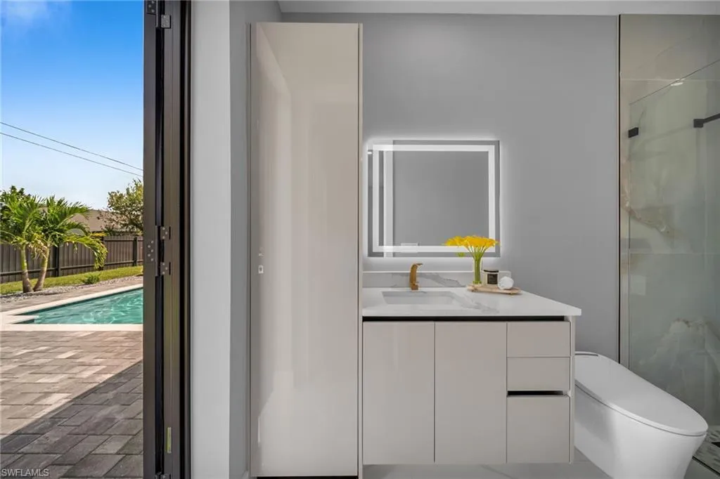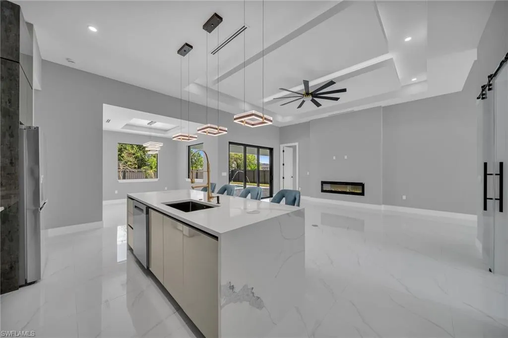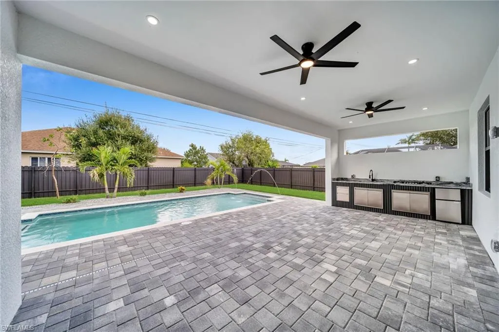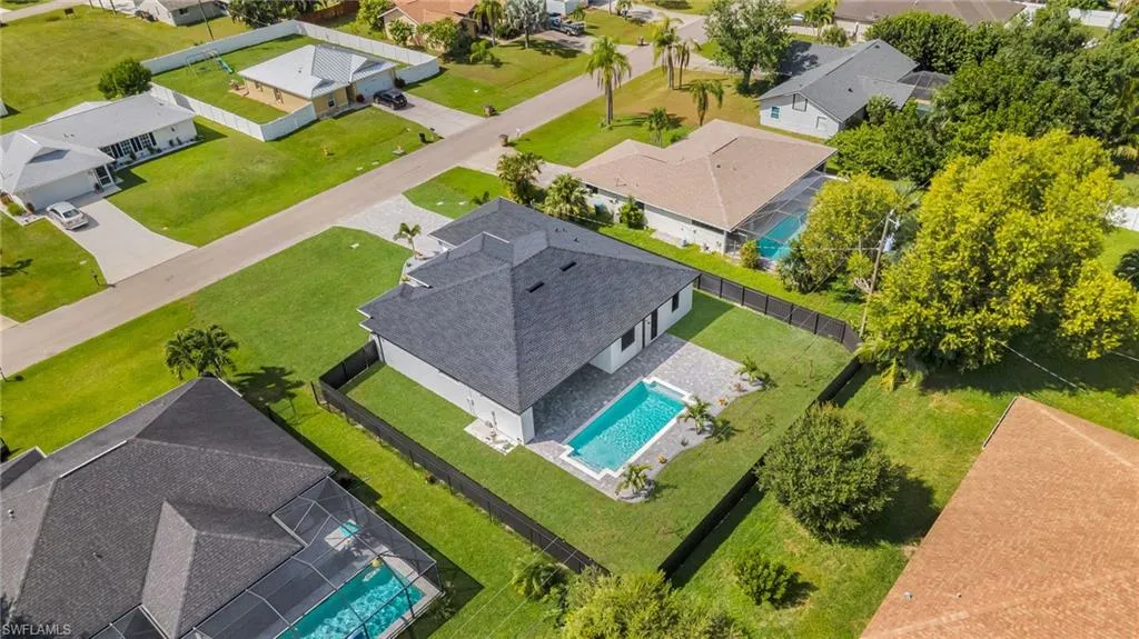 STUNNING NEW CONSTRUCTION HOME WITH LUXURIOUS UPGRADES!! All ASSESSMENTS ARE IN AND WILL BE PAID IN FULL AT CLOSING!! THIS HOUSE IS NOT IN A FLOOD ZONE! THE SELLER WILL CONTRIBUTE 10,000 TOWARD THE BUYER’S CLOSING COST! All around fenced for privacy, This 4 bedroom, 3 full bathroom, and 2 car garage, residence offers over 2,000.sq. ft. of living space, Beautiful pool with water salt system and a convenient outdoor shower, large lanai under roof area, outdoor kitchen with stove, sink and refrigerator, extended kitchen with stainless steel appliances, living room has high ceilings and plenty room, beautiful modern tile through the home. Big master with 2 spacious walk-in closets, Great bath with modern featured and bathtub with custom tile surround. The two additional bathrooms (one of then is a pool bath and access to bedroom) are designed to satisfy the buyer. Each of the remaining bedrooms also offers ample storage with walk-in closets. With impact windows and doors. This home offers comfort and functionality in a fantastic location. Don’t miss this incredible opportunity!