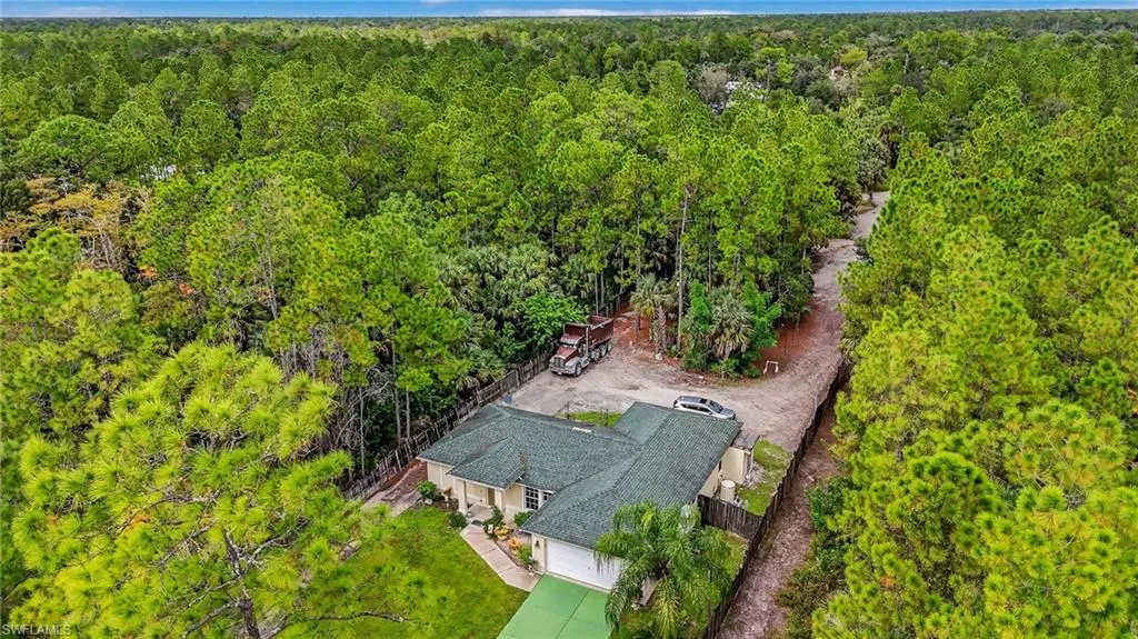 Move-in ready 3BR/2BA single-family home on 1.14 acres in Golden Gate Estates! This well maintained, 3 bedroom, 2 bathroom home features newer roof (2019), remodeled kitchen, Newer AC and water heater (2024), Remodeled master bathroom, custom built concrete storage shed (size 20×24) with an outdoor terrace, various fruit trees (bananas, mango, guava).