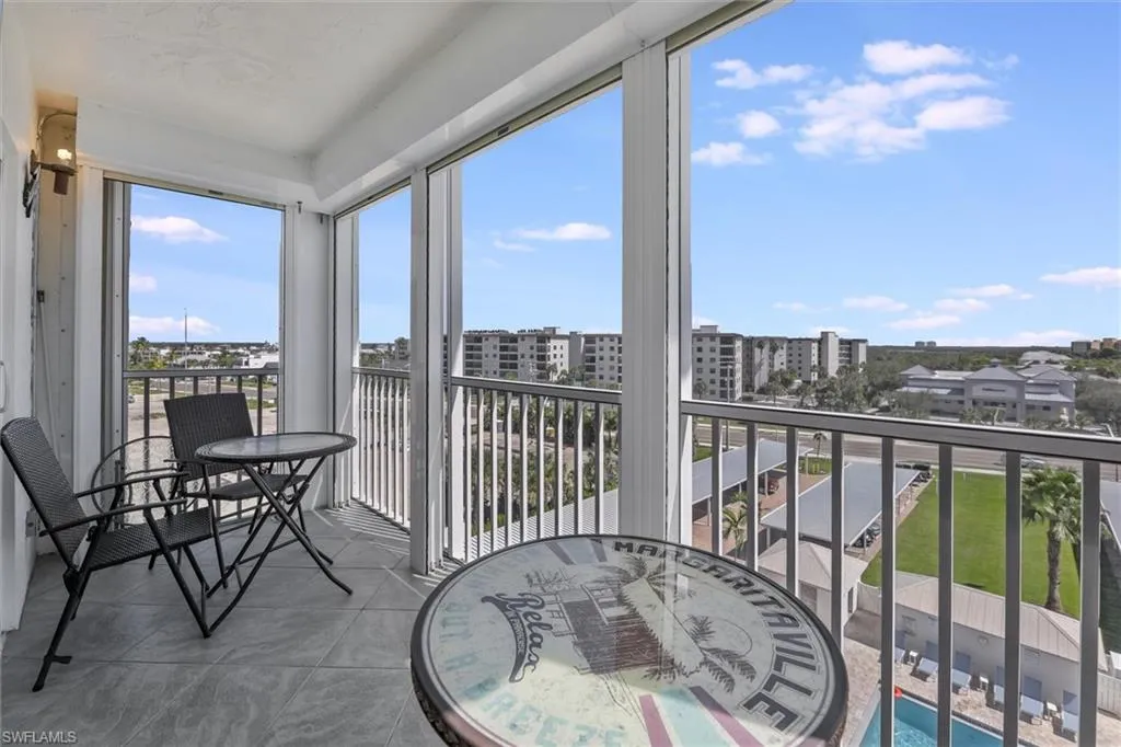 Enjoy island living at its best in this comfortable and bright corner unit offering panoramic bay views and maximum convenience. Located directly across from CVS, 7-Eleven, and Santini Plaza, you can grab your morning coffee, dine out, shop, or enjoy entertainment—all without needing a car. Marina access, restaurants, and essential services are just steps away. Property Features: Renovated kitchen by Cornerstone Builders featuring Corian countertops and stainless steel appliances- Washer & dryer (2021) and garbage disposal (2017)- New windows and sliding doors installed prior to Hurricane Ian- A/C replaced in 2020- Hot water heater replaced in Fall 2024- Electric hurricane shutters on lanai- Plantation shutters.
