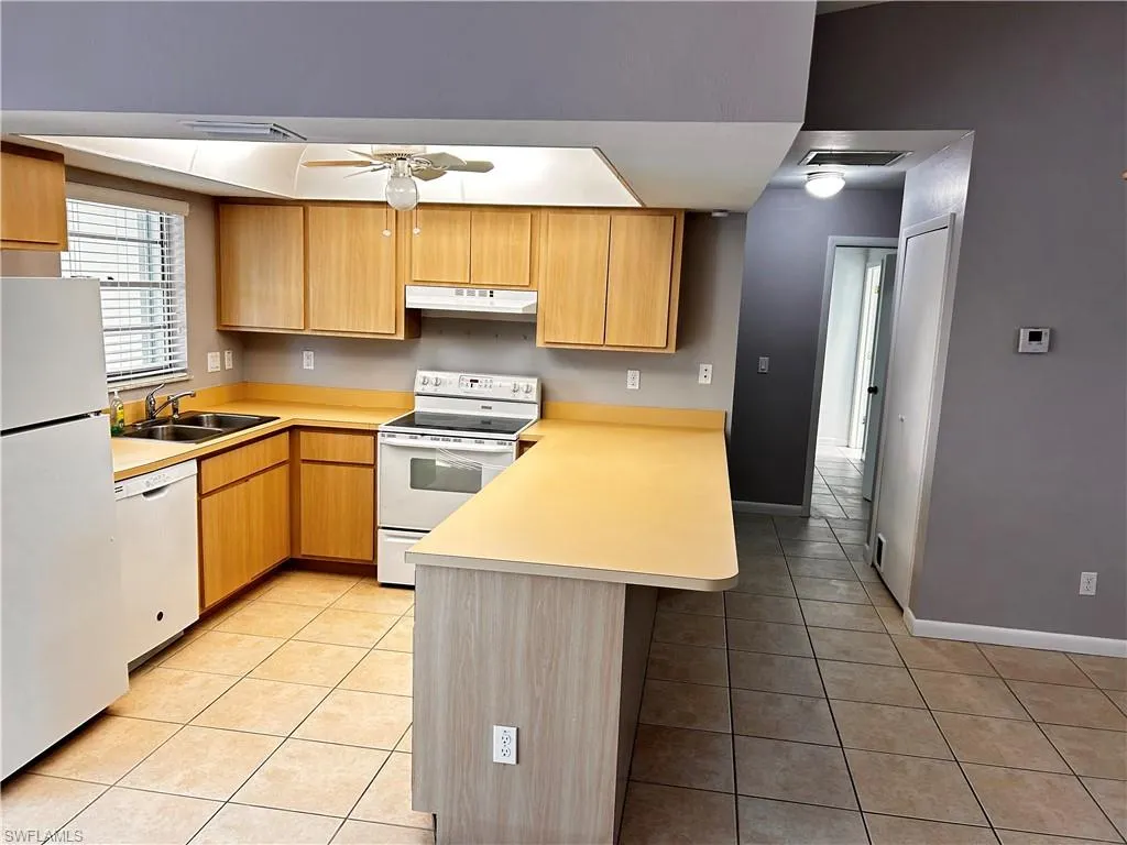 This well-maintained 2-bedroom, 2-bath home is located in the highly sought-after San Carlos Park area. The home features a brand-new, 2025 permitted roof, cathedral ceilings in the living room, a one-car garage, and an oversized laundry room providing plenty of storage and workspace.