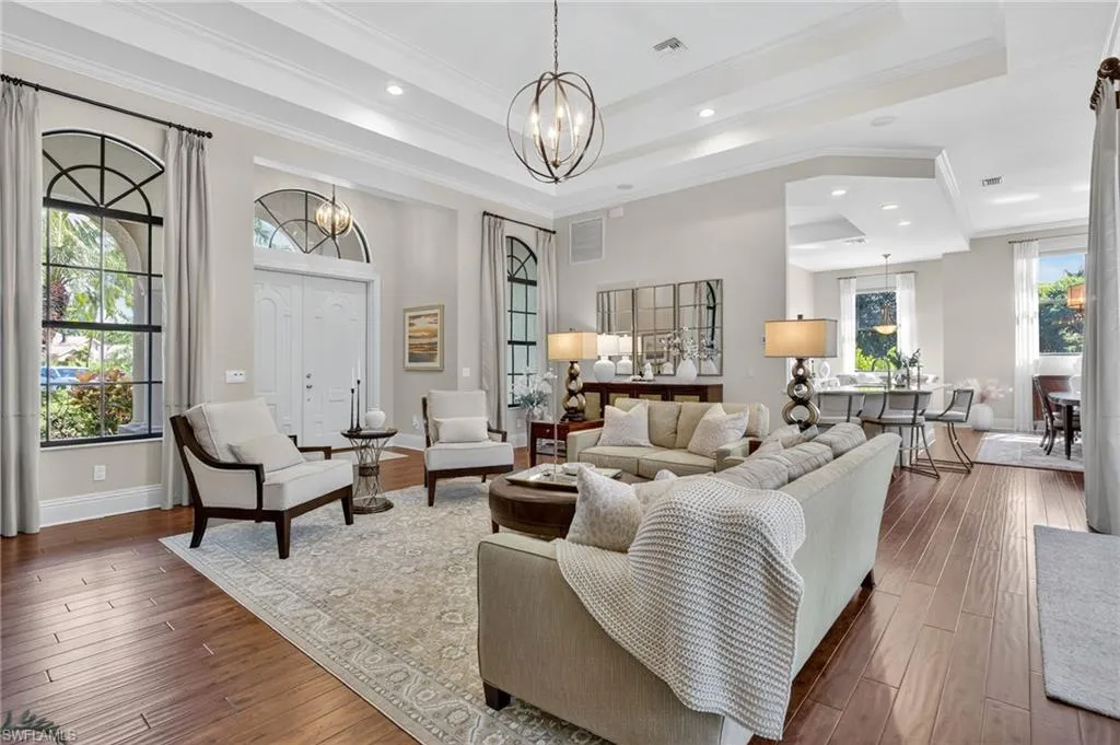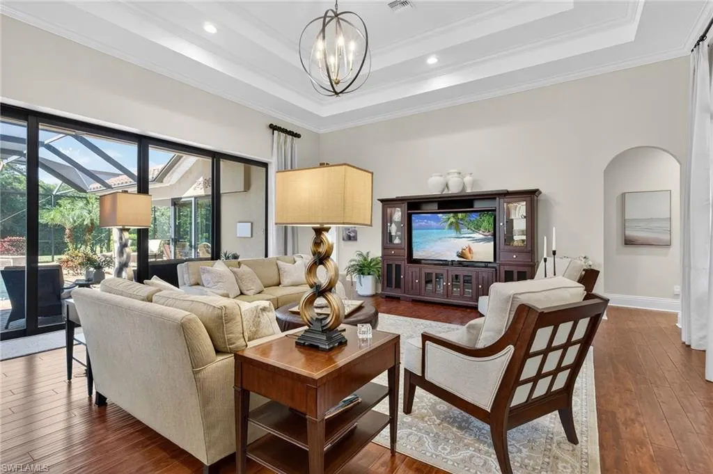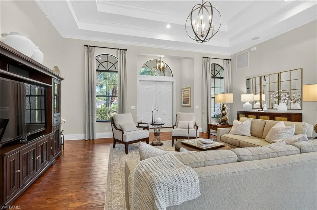This is the one you’ve been waiting for in Briarwood! This exquisite masterpiece is being offered TURNKEY and ready for immediate occupancy! Live the Naples lifestyle right here at 990 Tivoli Ct…the property features X500 flood zone, SOUTHWEST EXPOSURE for all day sun on the oversized heated POOL & SPA, 4 large bedrooms, 3 full baths, PREMIERE LOT LOCATION with lots of “elbow room” from neighbors, HARDWOOD FLOORS, QUARTZ countertops, STAINLESS STEEL kitchen appliances, oversized 2-car garage, luxurious landscaping with night accent lights, oversized screened-in lanai with extra covered dining and cooking area, and a house filled with natural light all day long. Location is fantastic, as it’s tucked away on a quiet court within the community, and also only a 10 minute drive from everything in Naples! HOA fees are extremely low, and still include 24 hour security guard at the gate, and tons of amenities…2 pools, volleyball court, basketball court, pickleball and tennis court, community room and a tot lot. Don’t let this one get away!