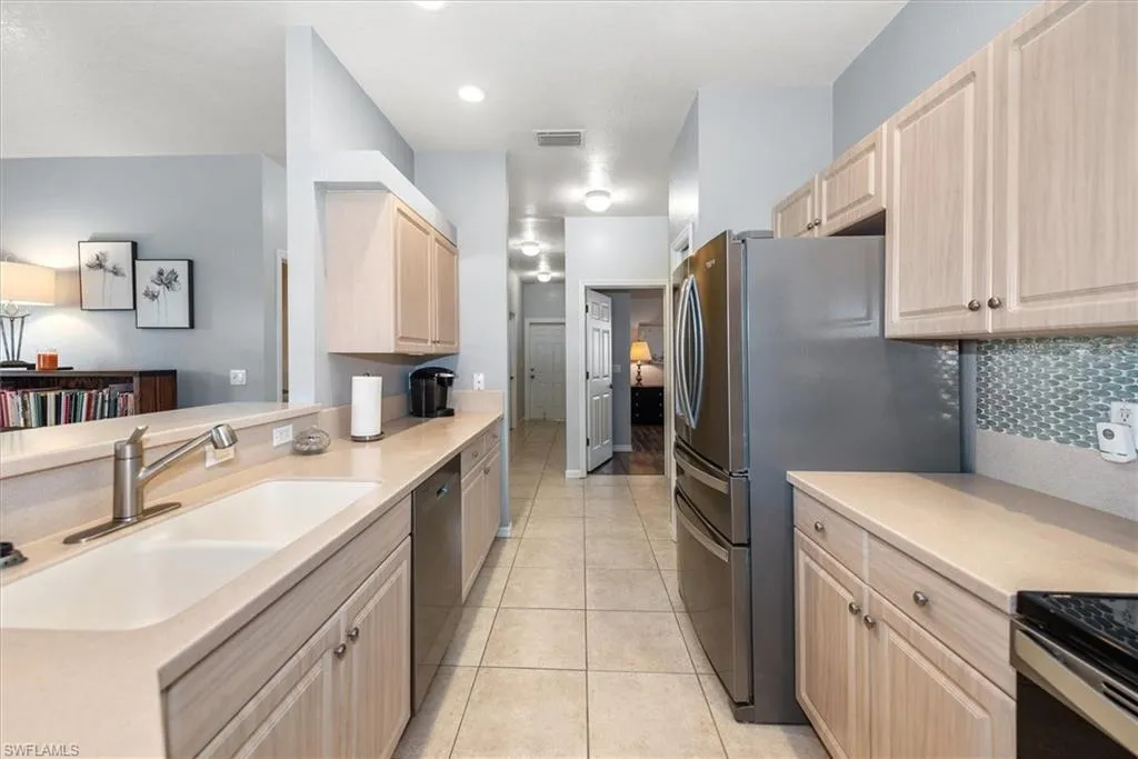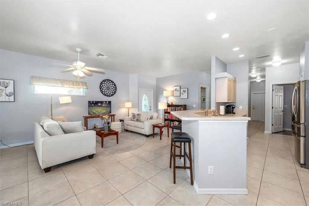 Bright & happy FIRST floor unit with 3 bedrooms, 2 baths, and a spacious 2-car garage. This home is so MOVE-IN ready for any new homeowner. Tile and laminate flooring gives this home an open and airy atmosphere. New kitchen appliances less than 1 year old. Well kept Corian counter tops and attractive kitchen backsplash. Washer and dryer replaced in October 2024. Tiled flooring in screened lanai gives an added welcome. Added feature is garage door screening. Ownership pride shows in the photos and you will agree upon visiting. NO CITY TAXES, COUNTY ONLY, this is a tremendous savings for homeowners. City water and sewer. Located in a highly desirable community suitable for both full-time residency, seasonal visits or rental potential. Convenient for those who may deal with the everyday work day commute to Ft Myers. Return to the peacefulness of this community after your job commute to Ft Myers or elsewhere. This home presents an excellent investment opportunity for seasonal or annual rentals, given its immaculate condition and location. Ideal choice for those who work or enjoy leisure activities at the Immokalee Casino. Rapid access to SR-82, Fenway South, SWFL Intl. Airport and Minnesota Twins Stadium.