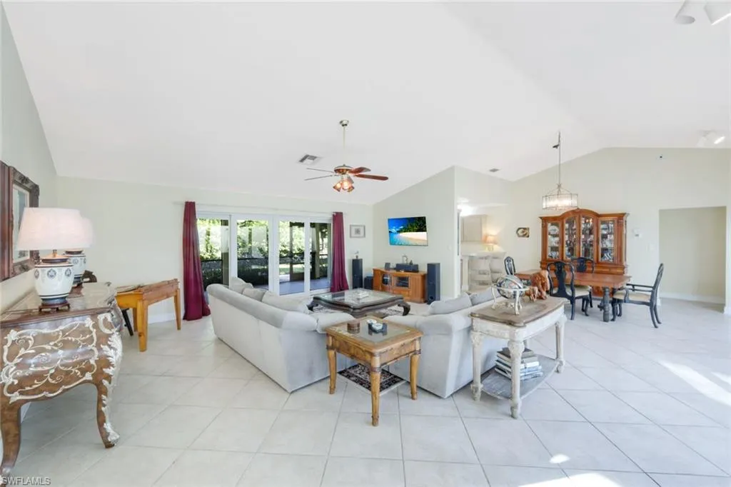Nestled within the gated community of Spanish Wells in Bonita Springs, this single family 3/2/2 car garage home offers 2,000+ sq ft of comfortable, resort-style living. Perfectly positioned along the 5th hole of the Spanish Wells Golf & Country Club, the property captures peaceful fairway views from its spacious screened-in porch which is ideal for morning coffee or relaxing evenings surrounded by lush greenery. Inside, an open-concept layout connects the living and dining areas with views overlooking the golf course. The primary suite offers a private retreat with walk-in closet and private outdoor area, while two guest bedrooms provide plenty of space for family or visitors. With brand new impact windows and doors (2024), and mature landscaping, this home blends style, comfort, and tranquility. No FLOOD insurance required. Enjoy all the amenities Spanish Wells has to offer, including optional memberships for 27 holes of championship golf, tennis, pickleball, a fitness center, clubhouse dining, and a heated community pool—all just minutes from Bonita Beach and world-class shopping and dining.