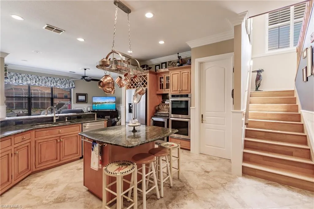 It is said buyers make a decision to buy a home almost instantly. Call it curb appeal- From the moment you arrive at this stunning gulf access pool home in Vanderbilt, you will want to see more! You can’t help but notice the attentive pride the owner has invested in this home. As you enter, the love and care here will instantly become apparent to the most discerning buyer. From the custom polished marble floor inlay in the foyer through to the glass wall opening to the pool and canal, you can’t help but appreciate all the attention to detail. There is a formal seating area in the living room and elegant formal dining. The master/primary first floor bedroom suite with sitting area draws in abundant light with direct pool access along with recently remodeled bath. Both walk-in closets have custom build-outs and includes a unique desk setting for privacy. The kitchen/great room that also overlooks the canal and pool will become your sanctuary to relax and entertain. “Cozy comfort” doesn’t even begin to describe how you will feel as you envision sharing this beauty with family and friends. Be sure to step outside to the lanai before seeing what else this stunner has in store. Step down to your private dock with lift. No more putting your boat in or out of the water or paying for expensive storage. Can you imagine sitting there as the kids enjoy the refreshing saltwater pool or yourself on a floating lounger with your libation of choice? There is a convenient pool bath off the lanai to save your floors from any “runs/drips/or errors” through the home. There are three (3) guest beds upstairs for your company to relax in. There is one bed with private en-suite and the other two (2) are connected with a Jack-N-Jill bath. The adjacent gathering room space provides your guests with a place to retreat after a day in the pool or at nearby beaches that are among the best in all of S W FL. Utilities have all been recently updated including new HVAC in 2022 and all new pool equipment. There is a water purifier included. Still have questions about the care and condition of this lovely home? Even the garage floor has been upgraded to include porcelain tile! This has been the sellers home. She has lovingly cared for it and looks forward to sharing it with the new owner who will hopefully enjoy it as much as she has. It is in a very desirable N Naples location just minutes to Vanderbilt Beach, dining and shopping along 5th Ave, and easy Gulf access. Don’t feel like venturing out into The Gulf? You can casually boat along in Vanderbilt Lagoon or explore the back waters all the way to Ft Myers Beach and beyond. RSW International Airport is about 30-40 minutes away. Whether a beach enthusiast, boater, full time resident, or snowbird looking to escape the winter winds, you will not be able to ignore the instant alure this home will have on you. Make an appointment to see it for yourself. Curb appeal? You will just want to call it home!