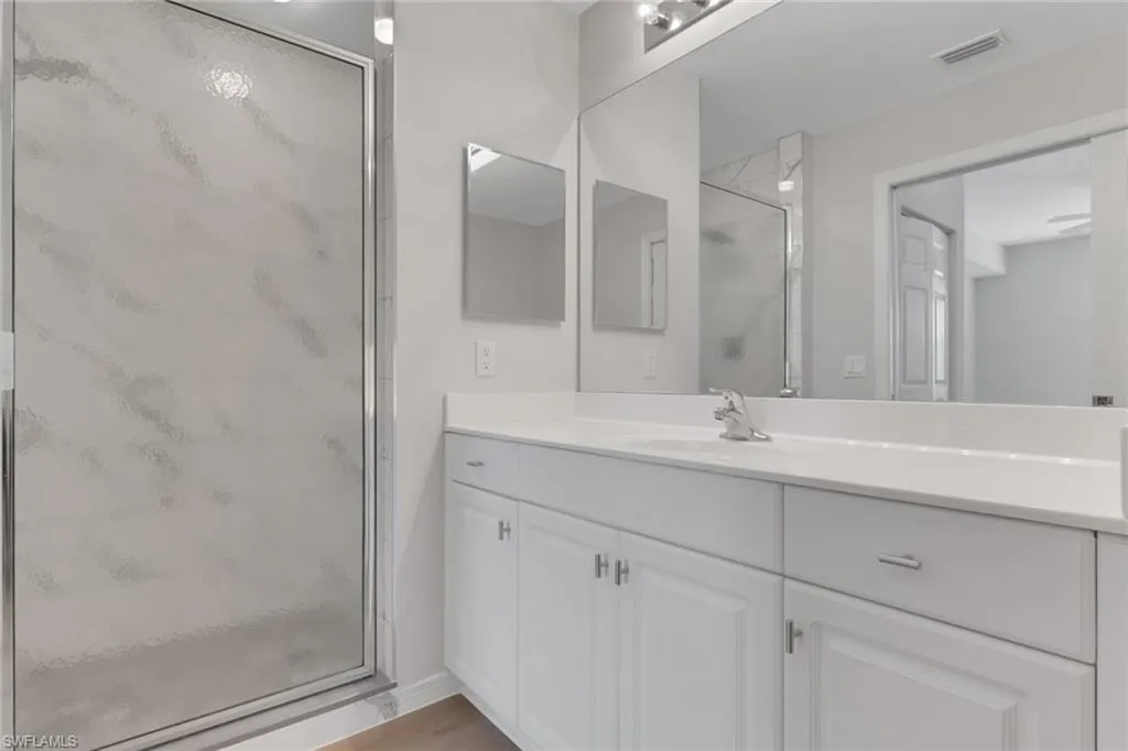 The primary suite is a peaceful retreat with its own golf course views, walk-in closet, and ensuite bath with dual sinks and a spacious shower. The guest bedroom and bath offer comfort and privacy for family or friends.