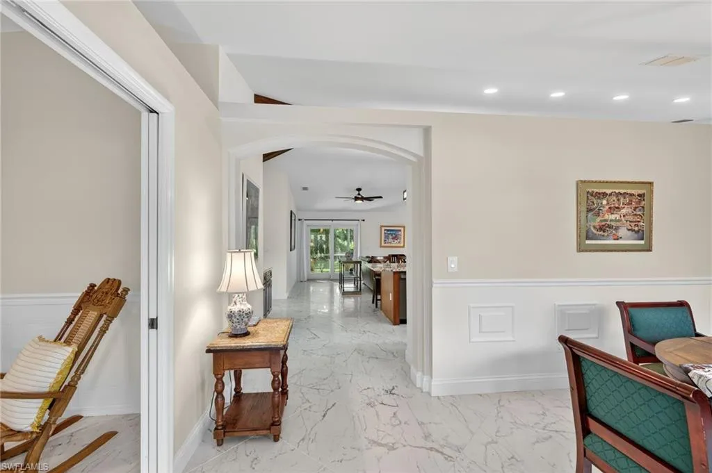Every major system and surface has been thoughtfully upgraded from 2019-2025, including a new Bryant A/C system (2021), roof replacement (2019), complete electrical panel upgrade (2022), outdoor aeration and water softener system (2023), and stunning 24×24 Italian porcelain tile with satin finish installed diagonally throughout (2021). Both bathrooms were remodeled with premium Schuyler vanities and Kohler fixtures (2022), while the kitchen features undercabinet and recessed ceiling lighting, new baseboards, and a brand-new dishwasher (2025). Hurricane-rated Andersen impact-resistant windows and sliders provide peace of mind, complemented by fresh interior paint (2024), new asphalt driveway with seal coat (2023), updated irrigation with 13 new rotors and controller (2023), custom Elfa closet systems in 5 closets (2023), and thoughtful touches like ceiling fans, updated door levers, and seven sets of new bi-fold doors. This is a truly turnkey opportunity—move right in and enjoy the perfect blend of natural tranquility and modern living!
