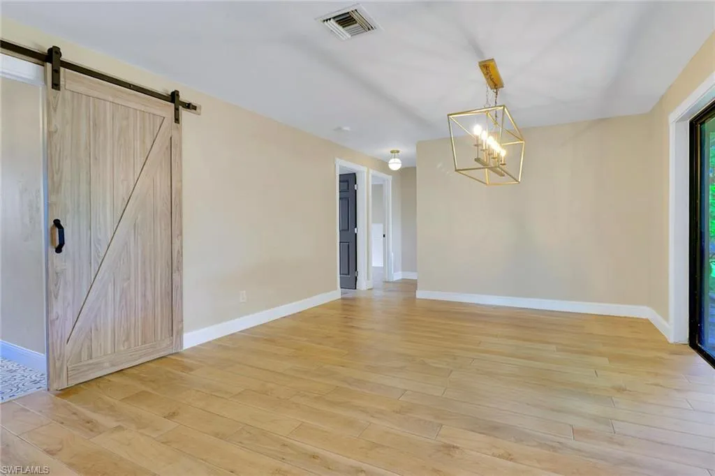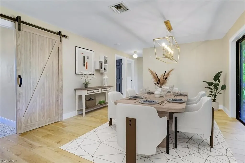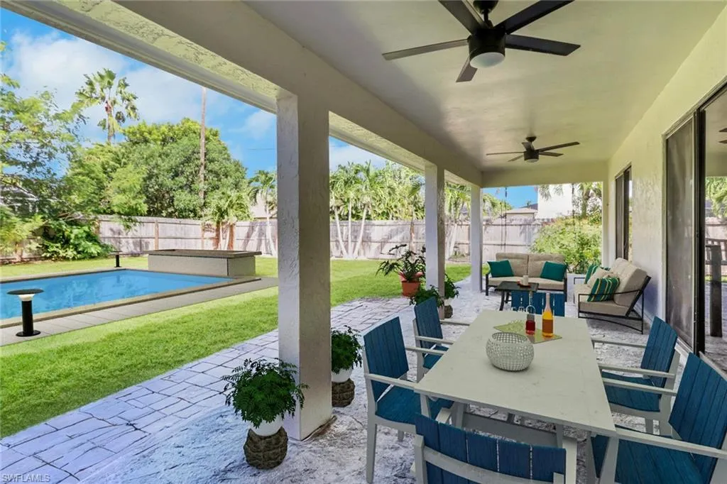 Fully Renovated Cape Coral Home steps away from Westin Hotel & Resorts + Tarpon Point Marina! This stunning 3-bedroom, 2-bath home has been thoughtfully updated from top to bottom with high-quality upgrades and modern finishes. Major improvements include a new shingle roof (Jan/Feb 2023), new fence (Jan/Feb 2023), a new AC unit with added air handler (June 2023), a fully renovated kitchen (Nov 2023), and remodeled bathrooms with new floors, vanities, and fixtures (Feb 2024). Every detail has been addressed to ensure years of comfort and worry-free living. Step inside to discover a bright, open layout featuring new wood-look tile flooring with decorative inlays, recessed lighting, and modern baseboards throughout. The chef-inspired kitchen showcases oversized cabinets, quartz countertops, a large center island, and stainless steel appliances—perfect for both entertaining and everyday living. The primary suite offers two large walk-in closets, while both bathrooms provide a relaxing, spa-like atmosphere with high-end finishes. Outside, enjoy your private lanai surrounded by lush landscaping and new exterior lighting. Located just a two-minute walk from Tarpon Point Marina, this home combines coastal charm, quality craftsmanship, and convenience to fine dining, boutique shopping, and waterfront entertainment—making it a true move-in-ready gem in the heart of Southwest Cape Coral. PHOTOS IN THIS LISTING HAVE BEEN VIRTUALLY STAGED.